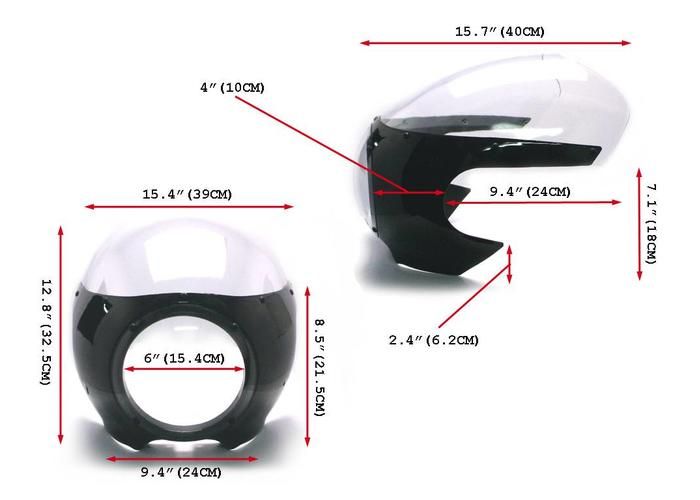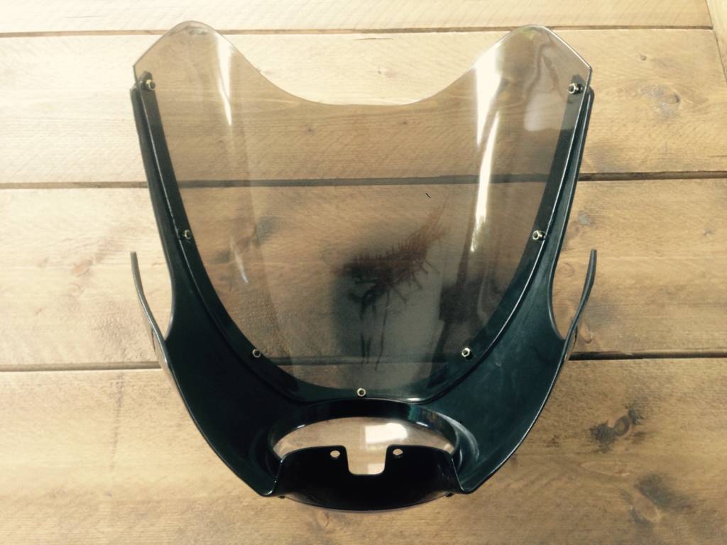 Hier habt Ihr genau das Richtige!! Universal Verkleidung im Retro Look. Stilecht im Look der 60-70er Jahre. Die Verkleidung ist aus schwarzen ABS Plastik, die transparenten Teile sind Dunkel getönt. Sehr wertig und stabil. Die Windschutzscheibe hat eine Stärke von 3mm!!.Diese Cafe Racer Verkleidung sieht super aus, wenn die Scheibe und die Scheinwerferabdeckung komplett in einer Farbe lackiert wird,und vorne eine Startnummer angebracht wird. Die Verkleidung wird unmontiert geliefert und besteht aus 3 Einzelteilen.