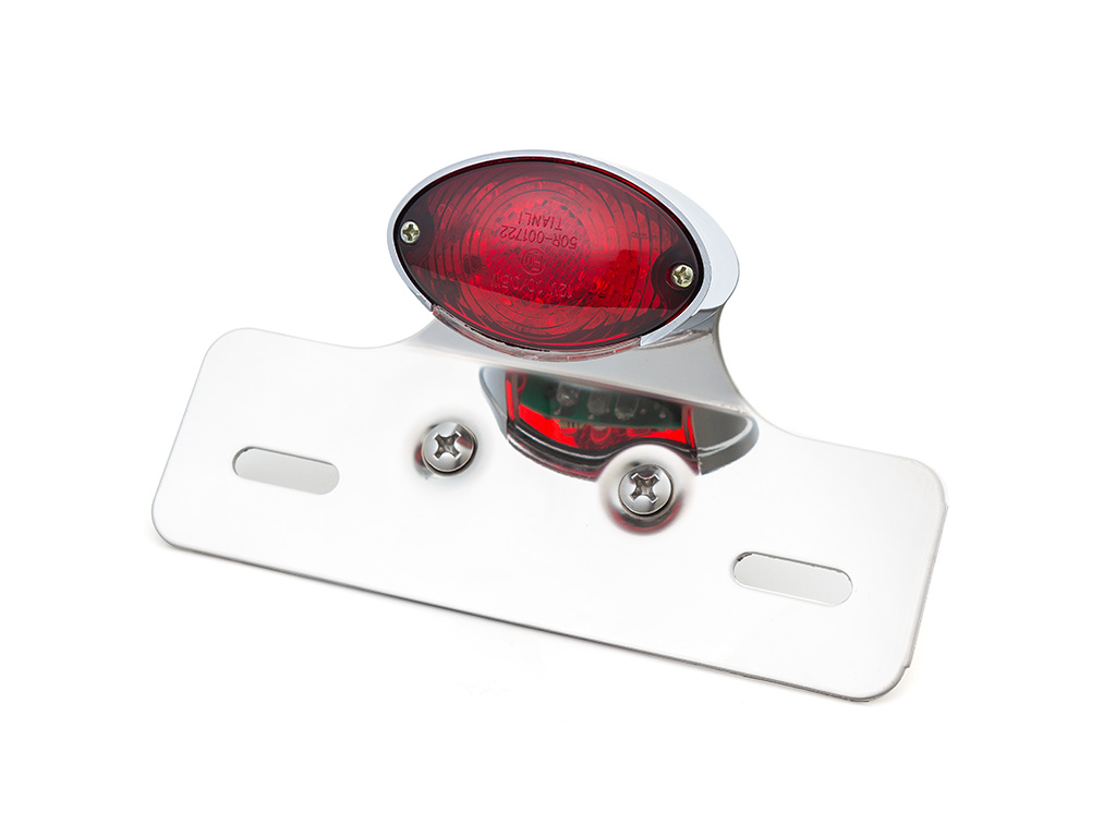 Dieses Rücklichtmodul "Delaware Chrome" ist ein kompletter angeschraubter Rück-, Brems- und Kennzeichenleuchtenhalter. Für diesen Old-School-Look.