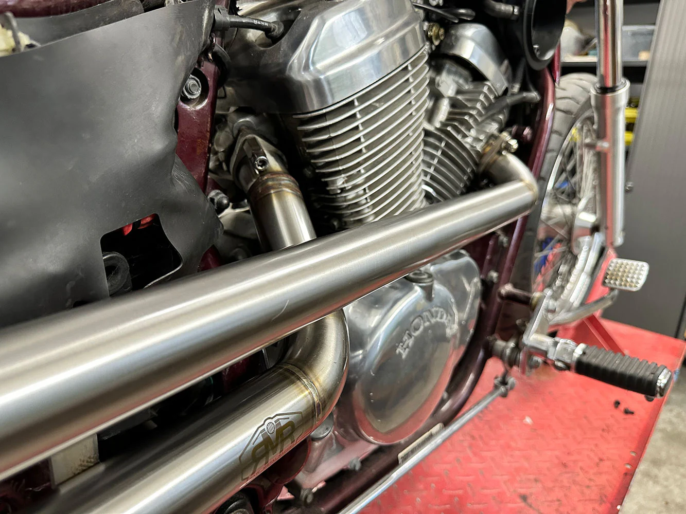 Raw Metal Racers fertigt für jedes Motorrad maßgeschneiderte Auspuffanlagen komplett aus Edelstahl und produziert auch Auspuffanlagen, wie diesen großartig aussehenden VT600/VLX-Auspuff.