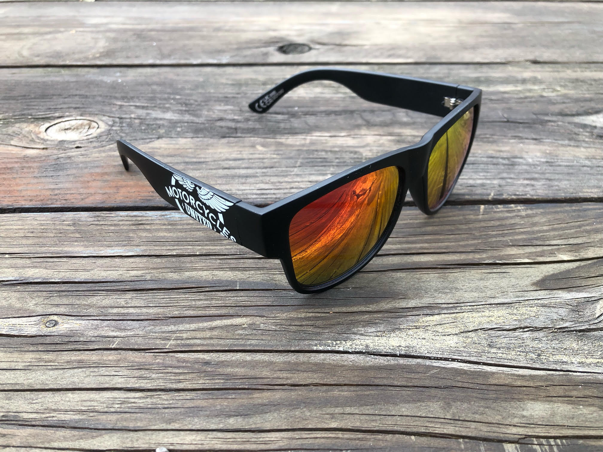 Werten Sie Ihren Stil auf, schützen Sie Ihre Augen und fahren Sie selbstbewusst mit der Sonnenbrille von Motorcycles United . Diese von den Experten von Motorcycles United entworfenen Sonnenbrillen vereinen cooles Aussehen mit robuster Haltbarkeit. Perfekt für Ihre Abenteuer, sie sorgen für scharfe Sicht und schützen Ihre Augen vor greller Sonne und Blendung. Darüber hinaus verändern sie das Spiel für Motorradfahrer – sie lassen sich einfach über Ihrer normalen Brille tragen oder sind mit Ihrem Helm kompatibel, um lästige Mücken und andere Lebewesen fernzuhalten. Machen Sie sich bereit, voll ausgestattet auf die Straße zu gehen – die Sonnenbrillen von Motorcycles United sind für alles gerüstet Weg.