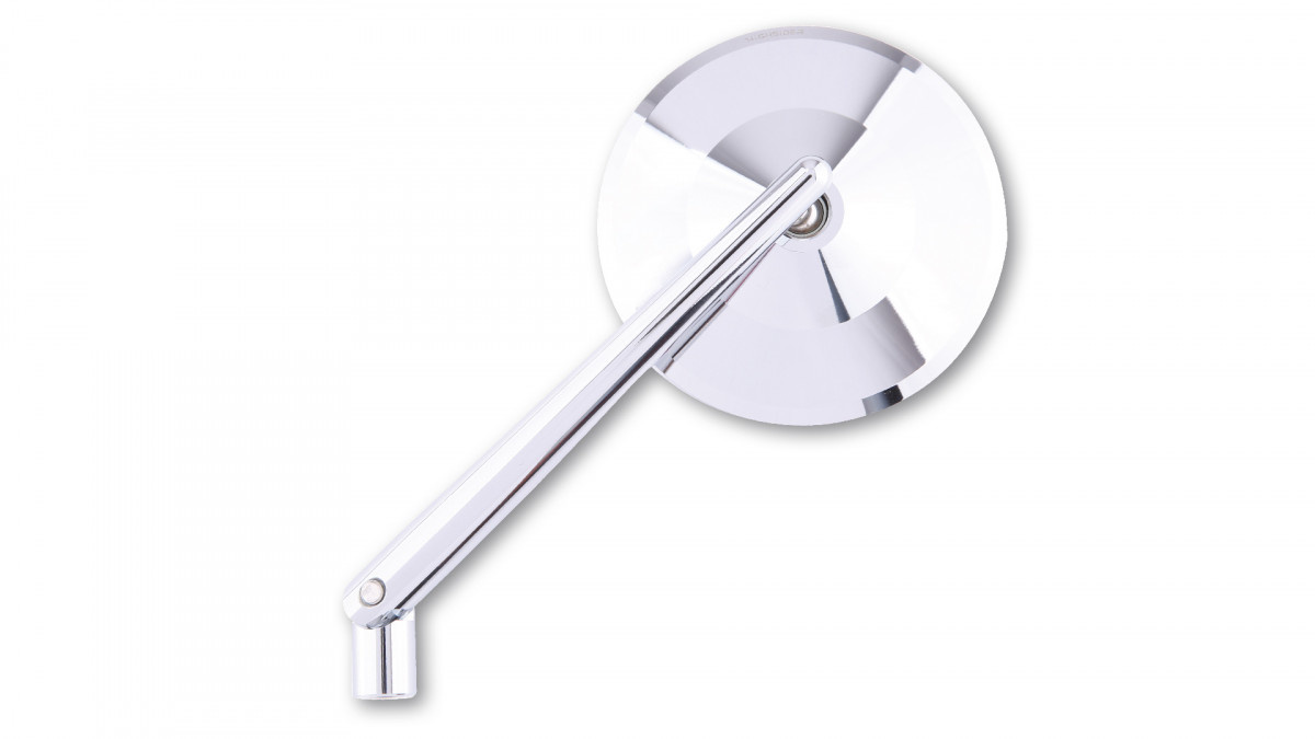 Edler Universalspiegel mit einem runden, verchromten oder schwarzen Aluminiumkopf und verstellbarem Griff. Dank der Verwendung eines zweiten Gelenks am Griff gibt es zusätzliche Verstellmöglichkeiten für Ihre Sicherheit. Inklusive extra Adapter M10 x 1,25 mm mit Linksgewinde für Yamaha. Kann für linke und rechte Seite verwendet werden, E-Zulassung.