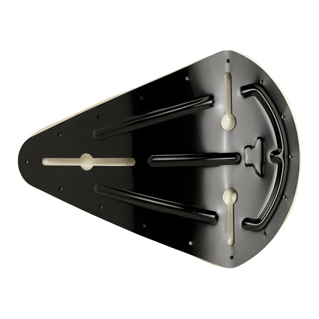 Spezielle Schiebebolzen sorgen dafür, dass Sie die Sitzfederhalterungen direkt über den Halterungen am Rahmen anbringen können. Keine verzogenen Solo-Sitzfedern! Kommt mit einer schwarzen galvanisierten Stahlwanne mit Verstärkungsrippen für Stärke. Die dünne, geschlossenzellige Polyurethanschaumschicht sorgt für eine möglichst niedrige Sitzhöhe und ist sehr wasserbeständig.