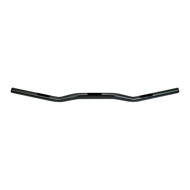 Mattschwarz galvanisiert/Chrom; 4130 Chromoly mit 3mm Wandstärke; Dimpled; Kommt mit einem größeren 1-1/8" (1.125" oder 28.6mm) Durchmesser in der Mitte für die Verwendung mit Motocross-Risern; Bar verjüngt sich auf 1" an den Kontrollen; Ungefähre Abmessungen: 30,5" breit x 2,25" hoch x 2,5" Pullback x 5" Mittelbreite