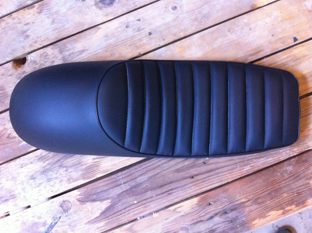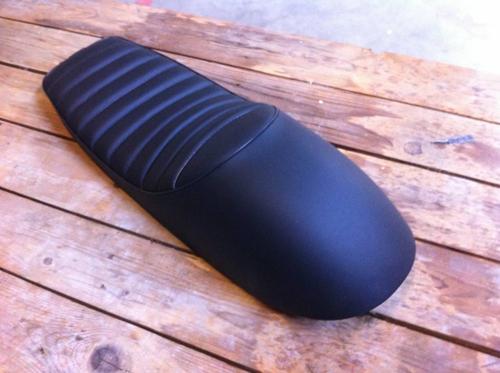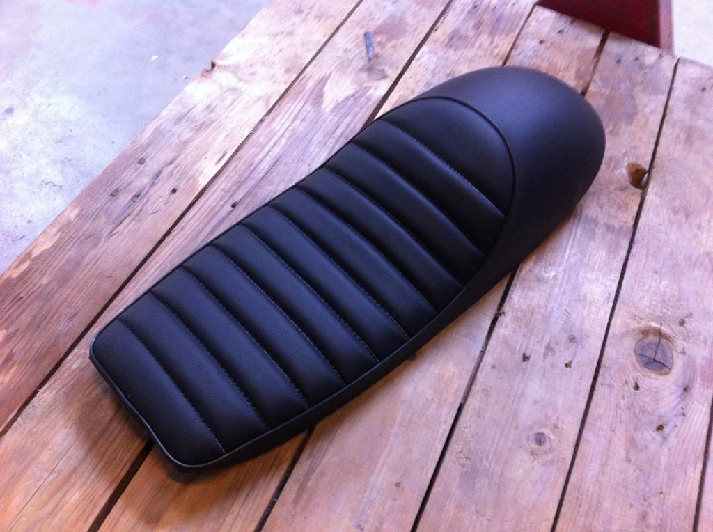Tuck N' Roll Cafe Racer Seat Black 96. This ABS molded base which is entirely upholstered with black PU leather.