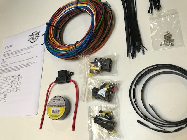 Universal Premium Kabelsatz zum Erstellen eines eigenen Kabelbaums. Mit diesem Set haben Sie einen vollständigen und klaren Überblick über Ihren Strom. Sehr empfehlenswert. Hochwertiges Kabel mit Aderendhülsen, Sicherung, Klebeband, Schrumpfschlauch, Steckern und Befestigungsmaterial.
