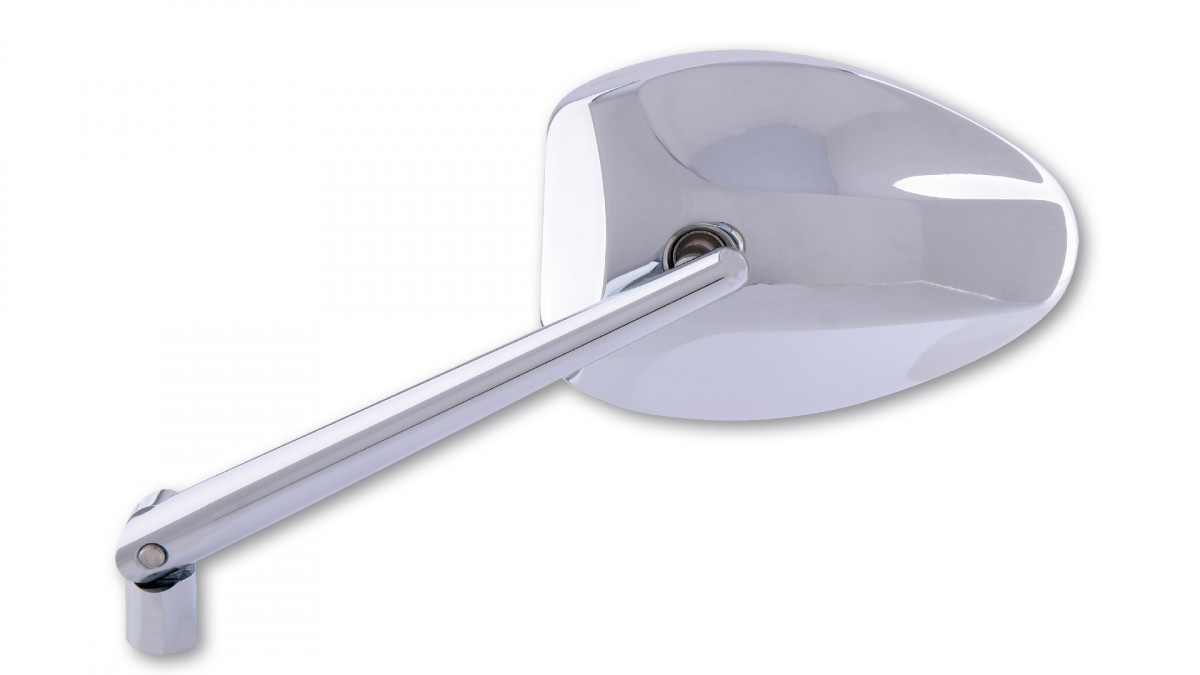 Universal-Lenkerspiegel mit schwarz eloxiertem Gehäuse. Stamm ist einstellbar. Durch die Verwendung eines zweiten Scharniers am Vorbau sind mehr Einstellungen für beste Sicht und Sicherheit möglich. Verwendbar für linke und rechte Seite inkl. Einem zusätzlichen Adapter M10 x 1,25 mm mit L / Handgewinde, z. B. Yamaha, E-Prüfzeichen.