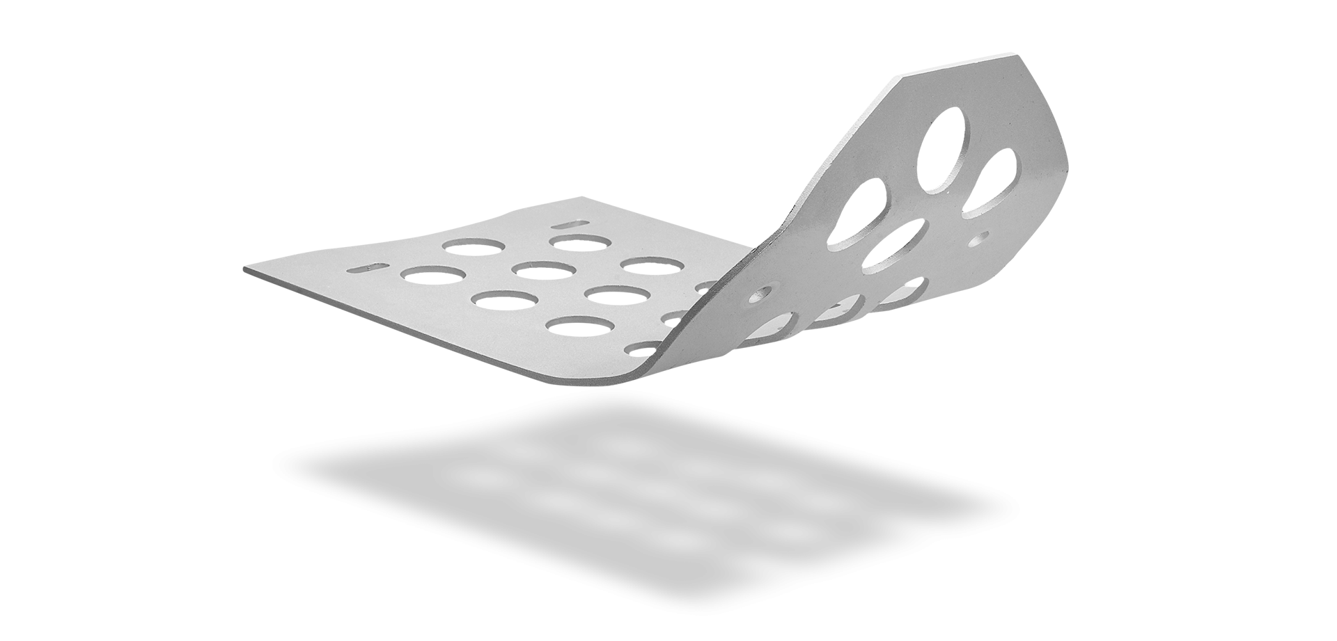 Der Motorschutz schützt die Vorder- und Unterseite des Motorblocks. Es besteht aus starkem Aluminium und ist mit elektrostatischer Farbe in einer silbernen Farbe lackiert. Die Unterfahrschutzplatte ist 4 mm dick und schützt die Vorder- und Unterseite des Motorblocks. Sie fällt zwischen die Rohre des Rahmens.