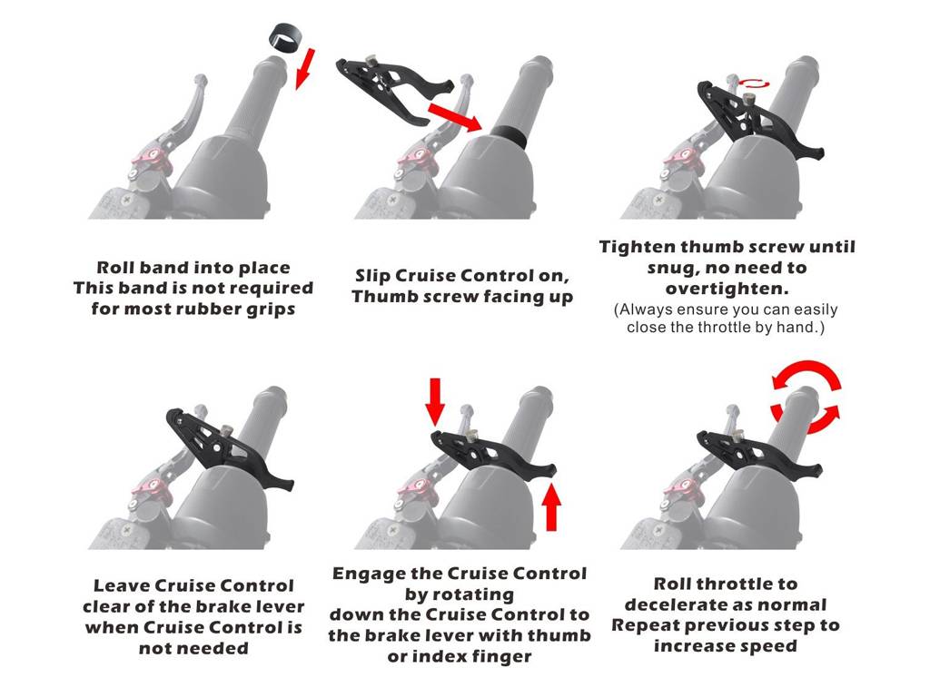 Wie bei jedem Tempomat, Gashebel oder Gasassistent ist es so konzipiert, dass es die Spannung am Handgelenk des Fahrers verringert und nicht die Betätigung eines Motorrads mit einem oder beiden Händen ermöglicht.
