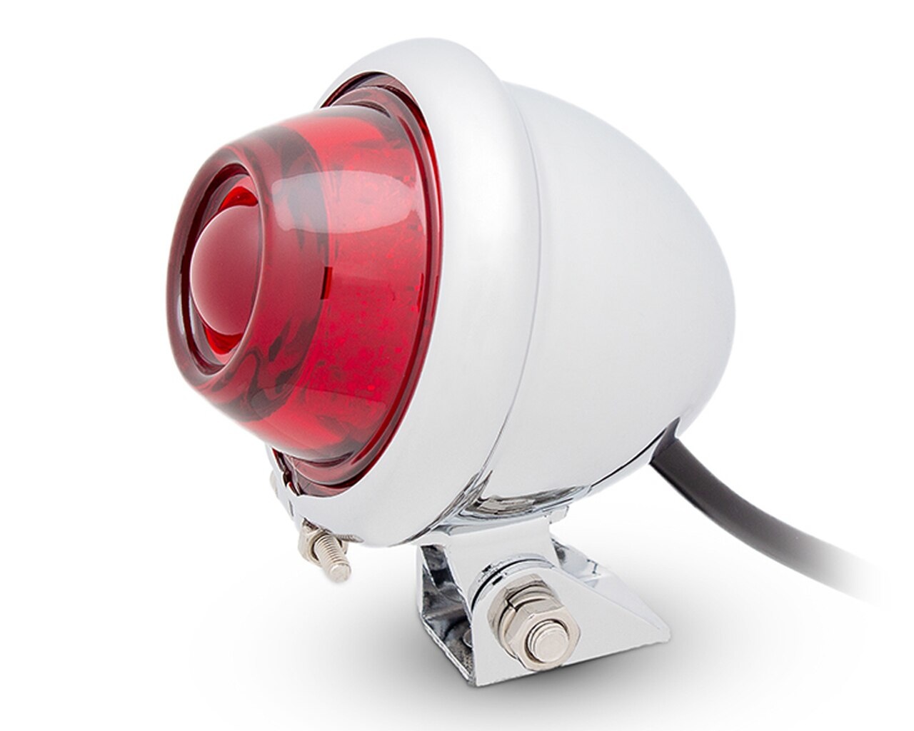 Vintage Retro LED Rücklicht Rot / Chrome. Sehr schönes Licht mit einem sehr gepflegten Abgang. Dieses Rücklicht ist höhenverstellbar und macht auf beiden Seiten eine gute Figur