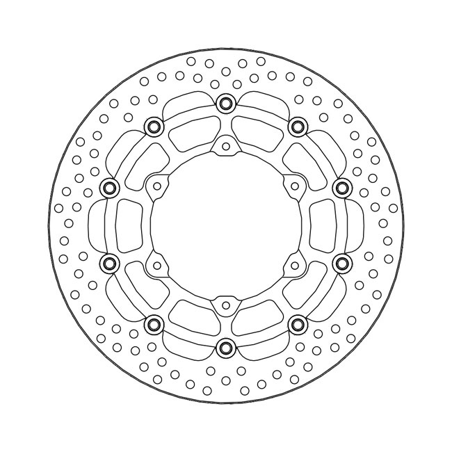 Die Moto-Master HALO-Bremsscheibe verfügt über einen hochwertigen Edelstahl-Außenring, der Hochleistungsbremsen ermöglicht und gleichzeitig extrem langlebig ist. - Die genaue Größe und Position der Entlüftungsöffnungen gewährleistet eine gleichmäßige Wärmeableitung unter hoher thermischer Belastung, während die Bremsbelagkontaktfläche gleichmäßig gereinigt wird. - Der lasergeschnittene und präzisionsgeschliffene Außenring ist an einem CNC-gefrästen Flugzeug-Aluminiumträger aus Billet befestigt, der schwarz eloxiert und laserbeschriftet ist. - Leichte Schwimmer aus Edelstahl. - TÜV genehmigt.