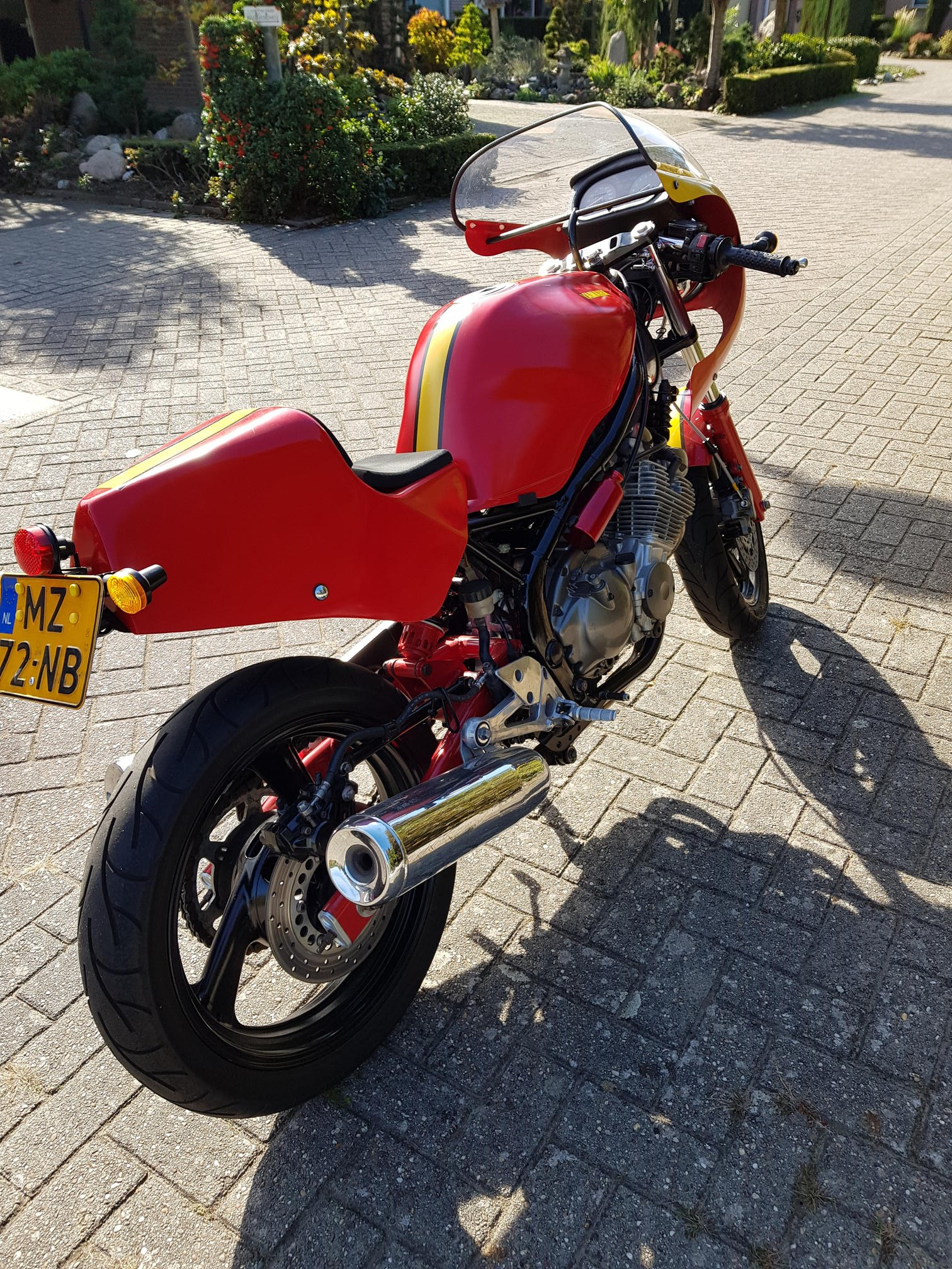 Umgebaut in einen Retro-Racer, Café-Racer.
