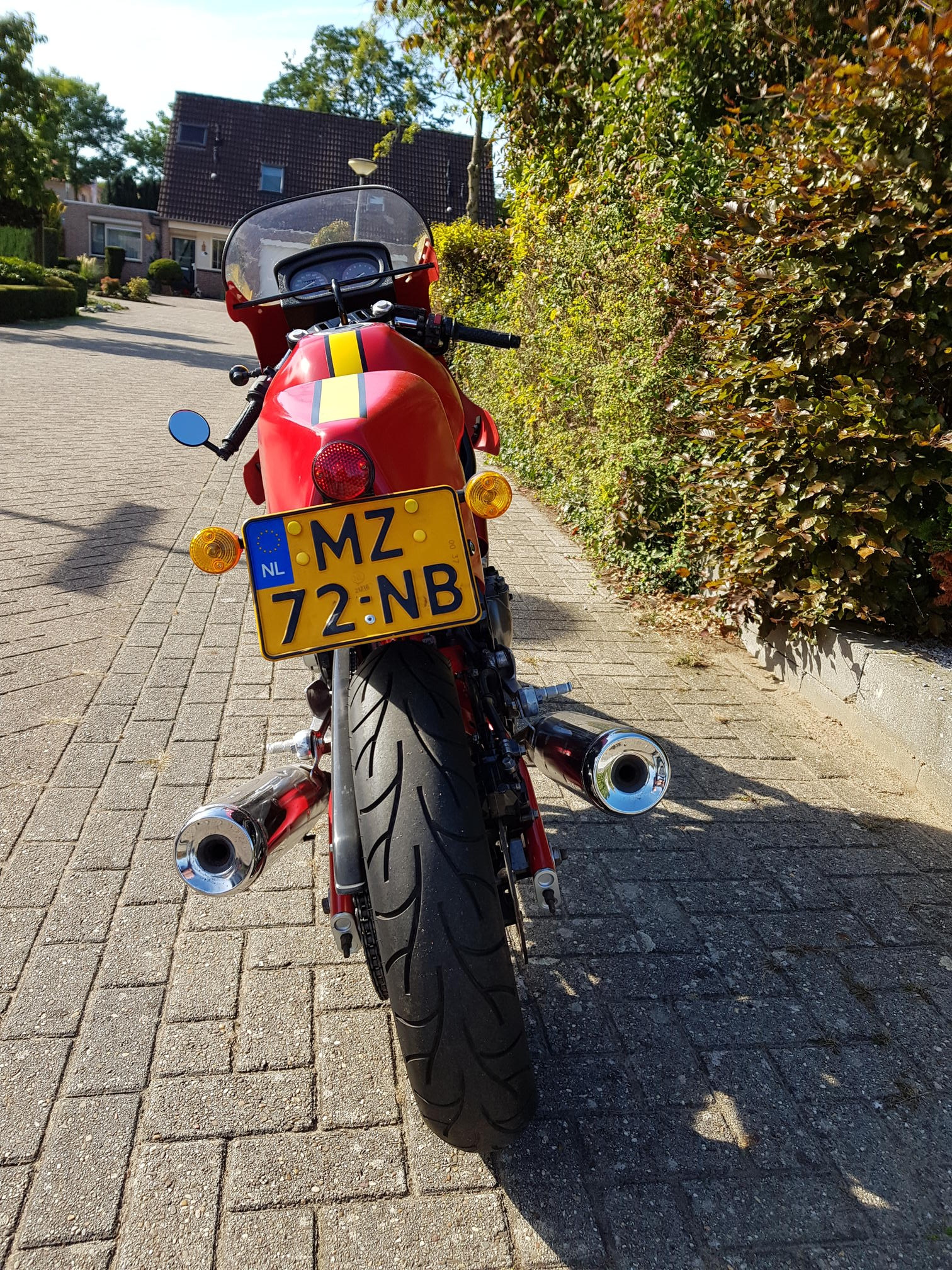 Räder, Tank und Schwinge lackiert, Rahmen pulverbeschichtet.