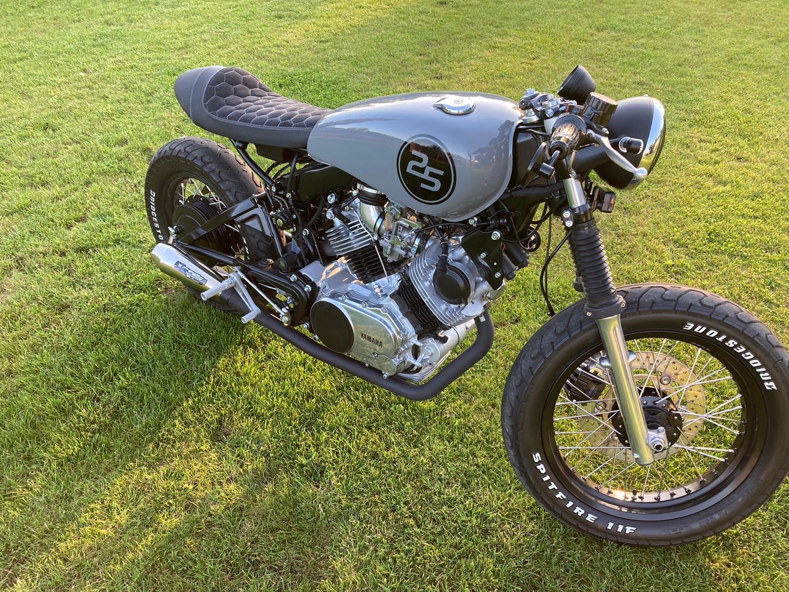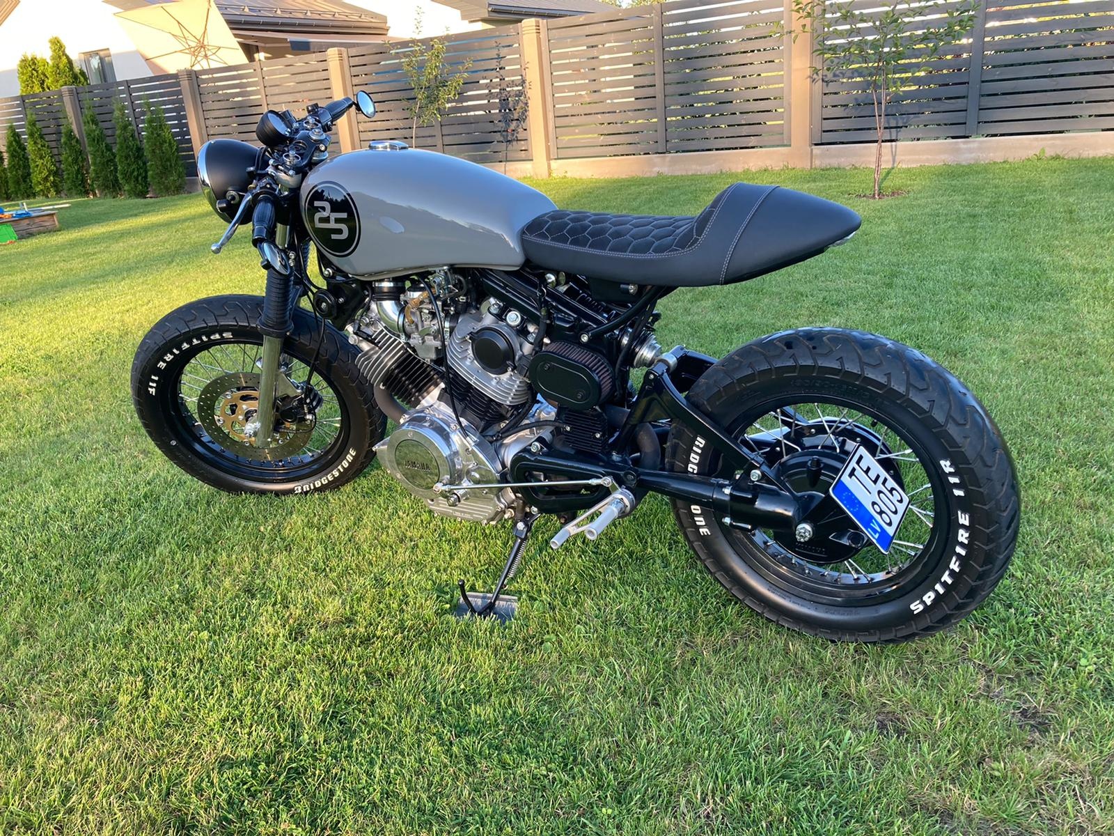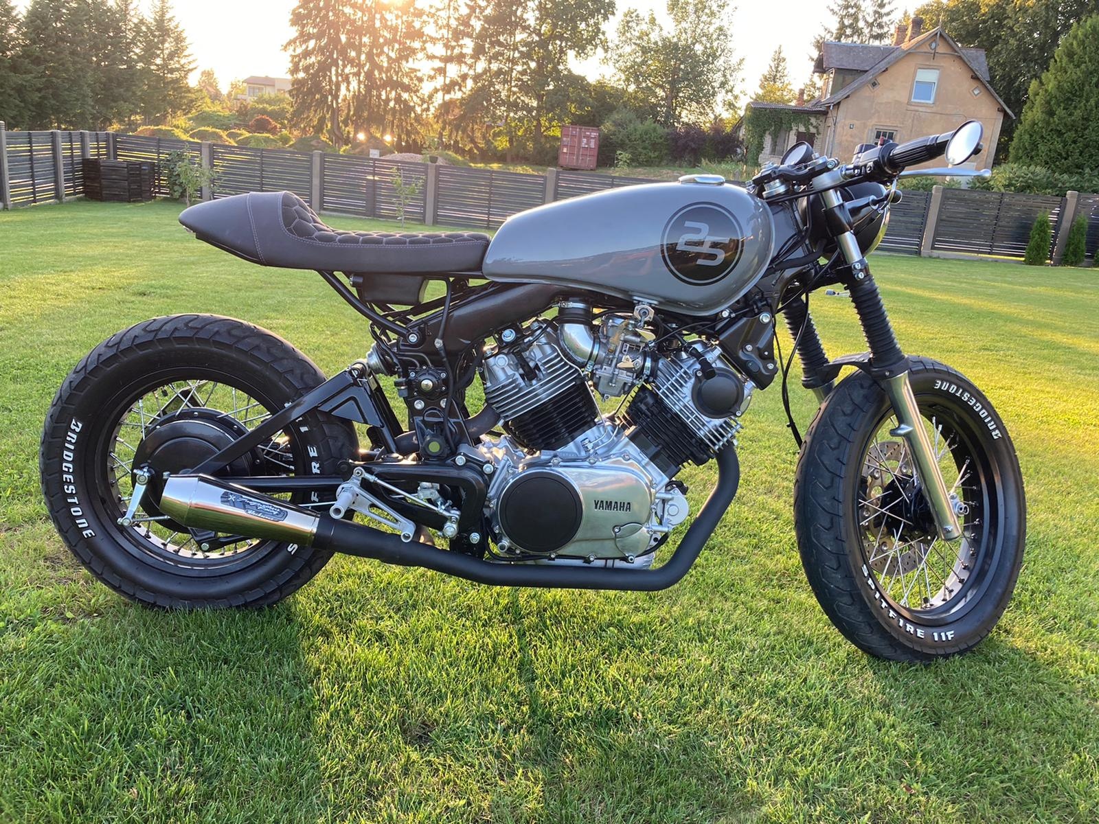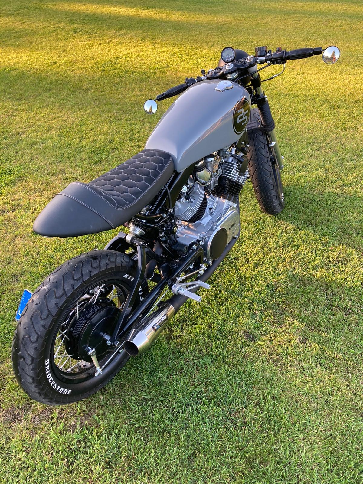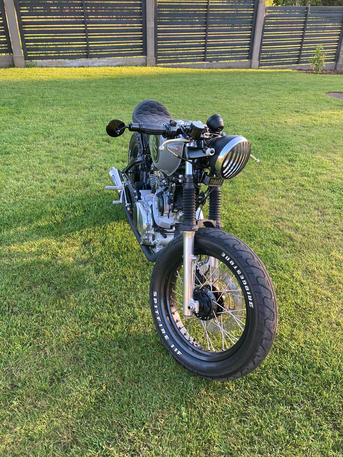 Ichverkaufe ein technisch sehr gutes und stilvolles Motorrad im Cafe Racer-Stil mit einem registrierten Wiederaufbauprojekt. Das Motorrad ist in einem sehr guten technischen Zustand, das Motorrad wurde mit hochwertigen Materialien umgebaut.Viele coole Sachen wurden von CafeRacerWebshop gekauft :)Chinesische Details werden nicht verwendet. Beide Räder stecken fest (ursprünglich wird dieses Fahrrad mit Leichtmetallrädern geliefert). Dies ist ein komplizierter, zeitaufwändiger und teurer Vorgang, da die Zahnräder von Kardan und Scheibe ausgerichtet und die hinteren Speichen passend gemacht werden müssen . Angesichts der Nachfrage nach diesem Modell für Nachrüstprojekte auf dem europäischen und US-amerikanischen Markt gibt es nur sehr wenige gut erhaltene Yamaha Virago XV750-Einheiten mit zentralem Stoßdämpfer. Das Fahrrad ist mit einer individuell gefertigten Abgasanlage, einem externen K & N-Luftfilter, einer Vergasereinstellung auf der Motorbank (Dynojet Stage 1-Kits installiert), progressiven Federungsfedern vorne und ca. 5 cm vorne abgesenkt ausgestattet. Tarrozzi-Clipons, hintere Sätze und Gabelstrebe.Acewell 2853 Tacho mit schwarzem Gehäuse.