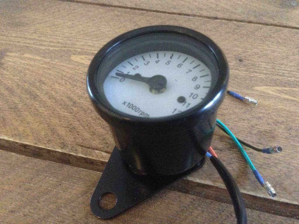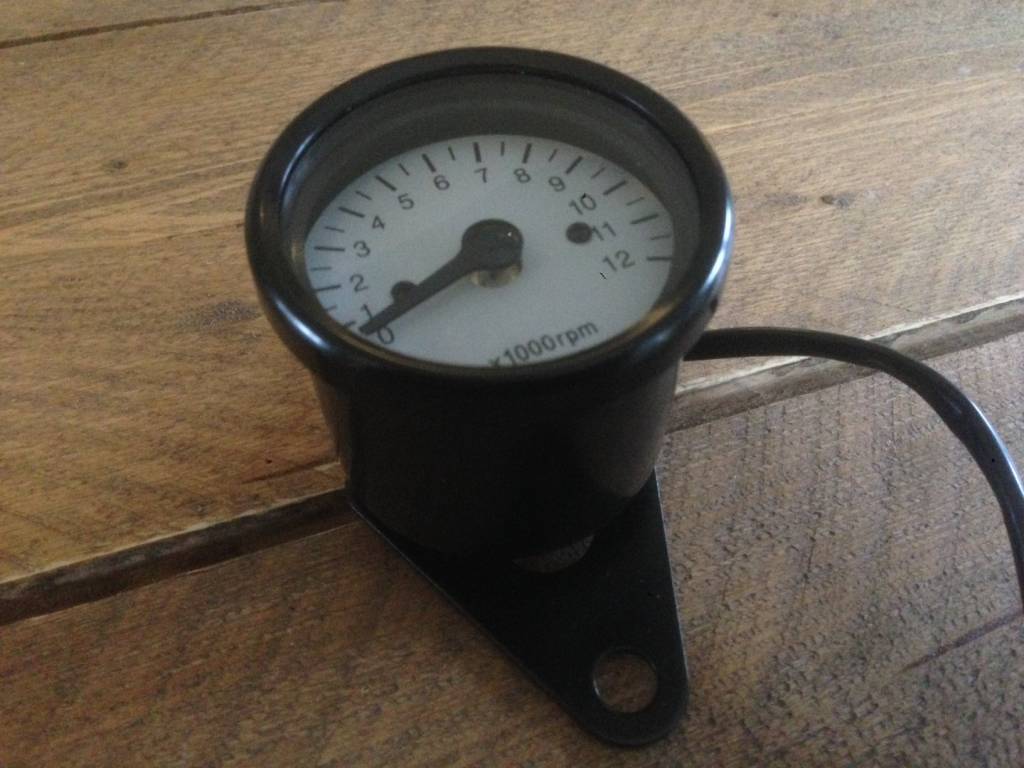 Tachometer 12.000 RPM Black. Nice classy steel tacho which goes to 12.000 RPM. Fits perfect with our black speedo's.