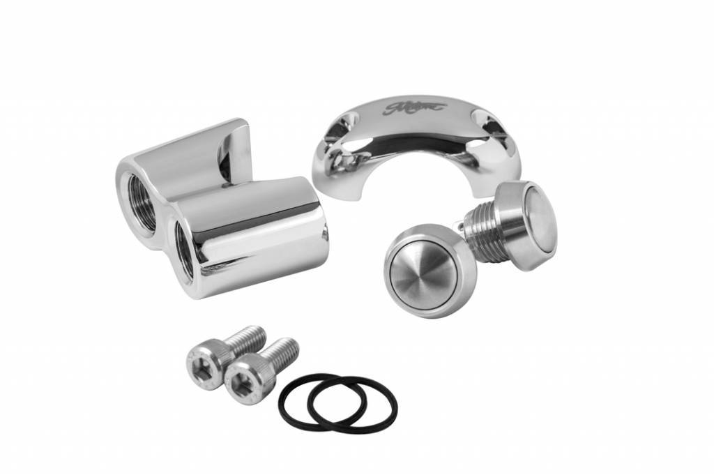 2 Button Switch 25.4 mm or 1" Chrome. This switch fits perfectly to a 25.4 mm handlebar and has two buttons, which you can use in combination with the M-Unit, but, of course not necessary.