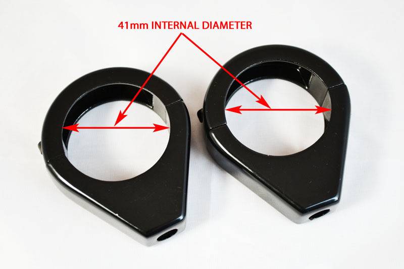 This is a complete kit to relocate your front indicators/turn signals. These are designed to fit motorcycles with 41 mm fork. You often see this being the case at Triumph, BMW and HD.