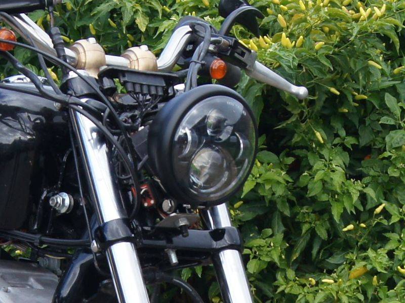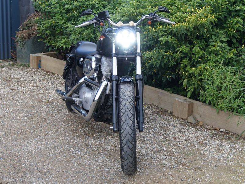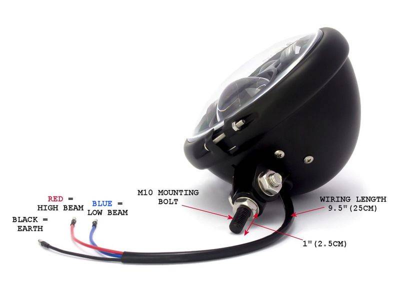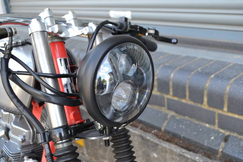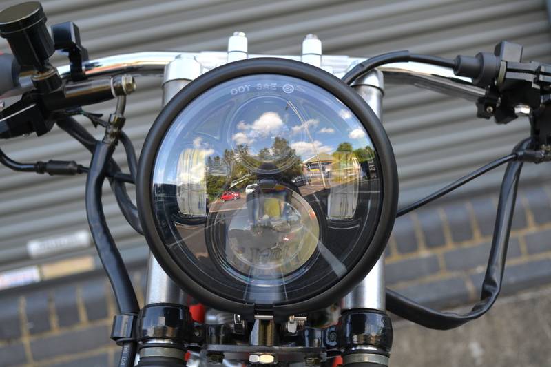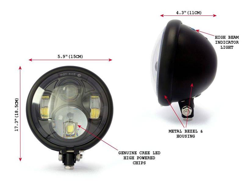5.75" CREE LED Headlamp Bates Style Bottom Mount. Very nice for a scrambler or chopper! Gives a really bake light and is very competitively priced compared to the limited competition.