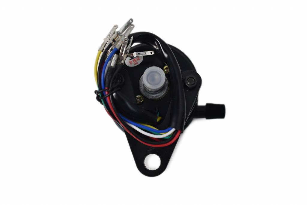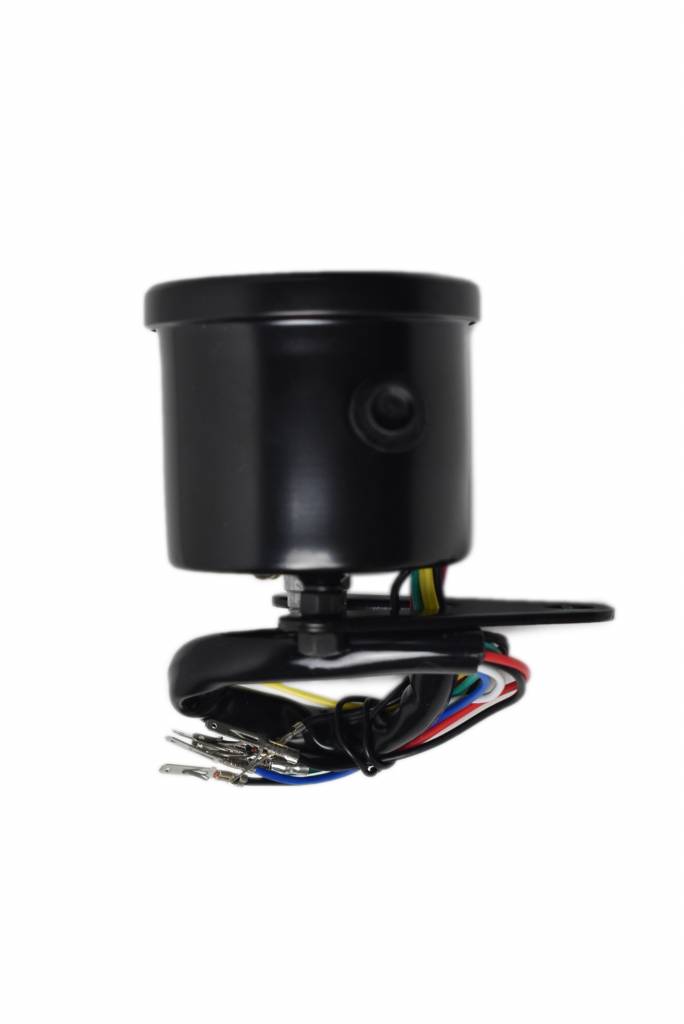 60MM Speedo with 4 Warning Lights LEDs - Black. Nice all-around Speedo for most Japanese motorcycles. The ratio is 1.4 which is therefore very common. The housing is made of powder coated steel.