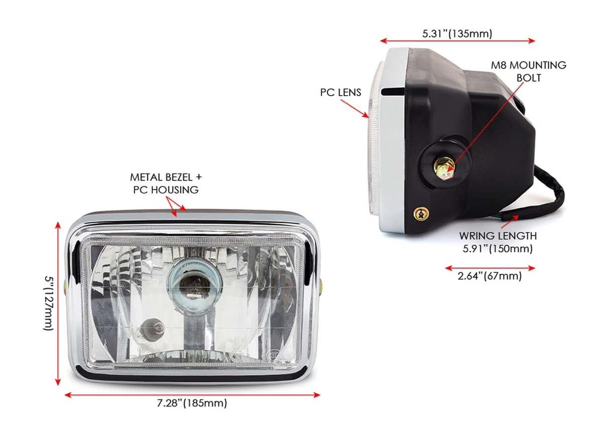 7" Black & Chrome Universal Rectangle Headlight - Emarked