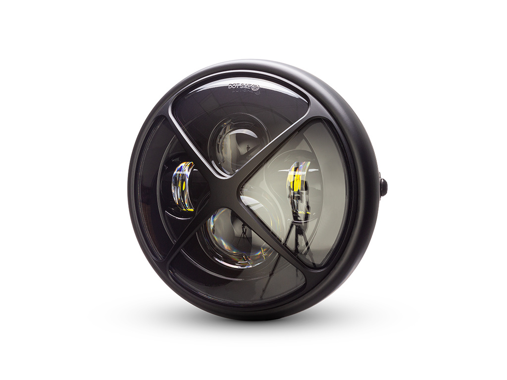 7 " Matte Black Multi Projector LED Headlight + X Cross Cover