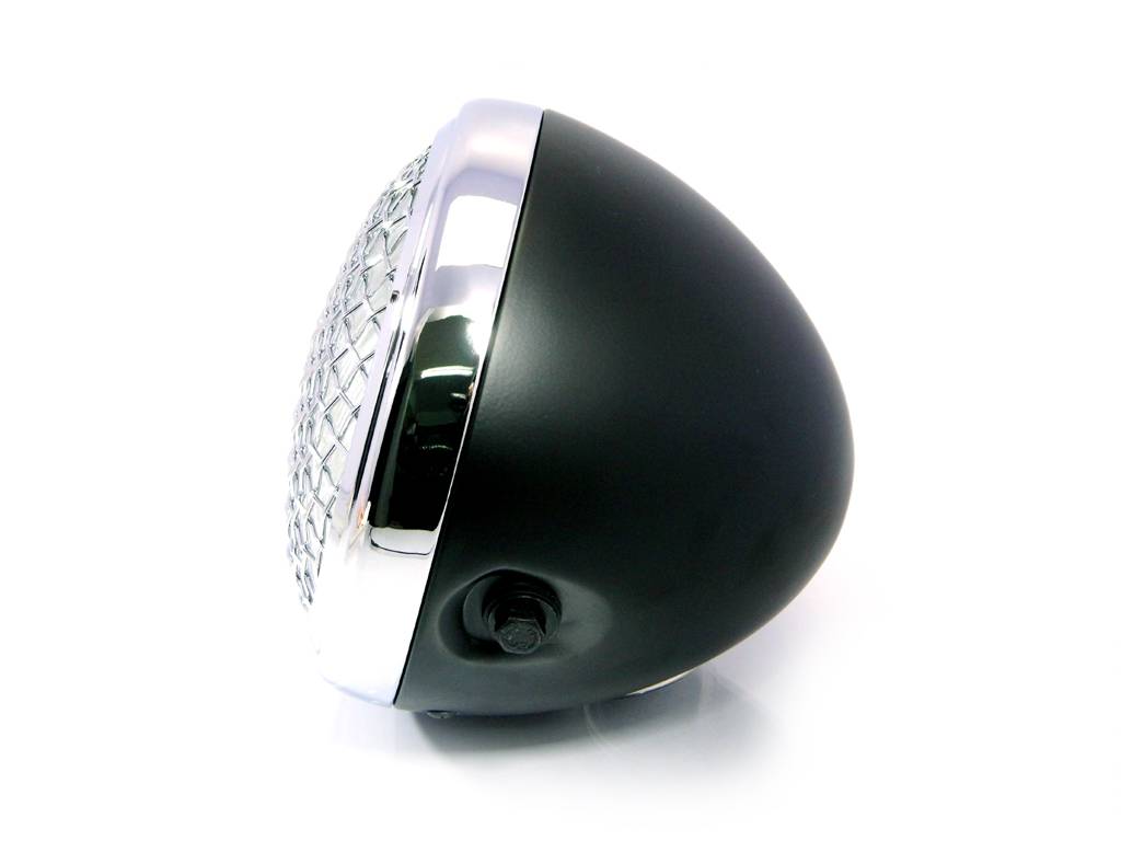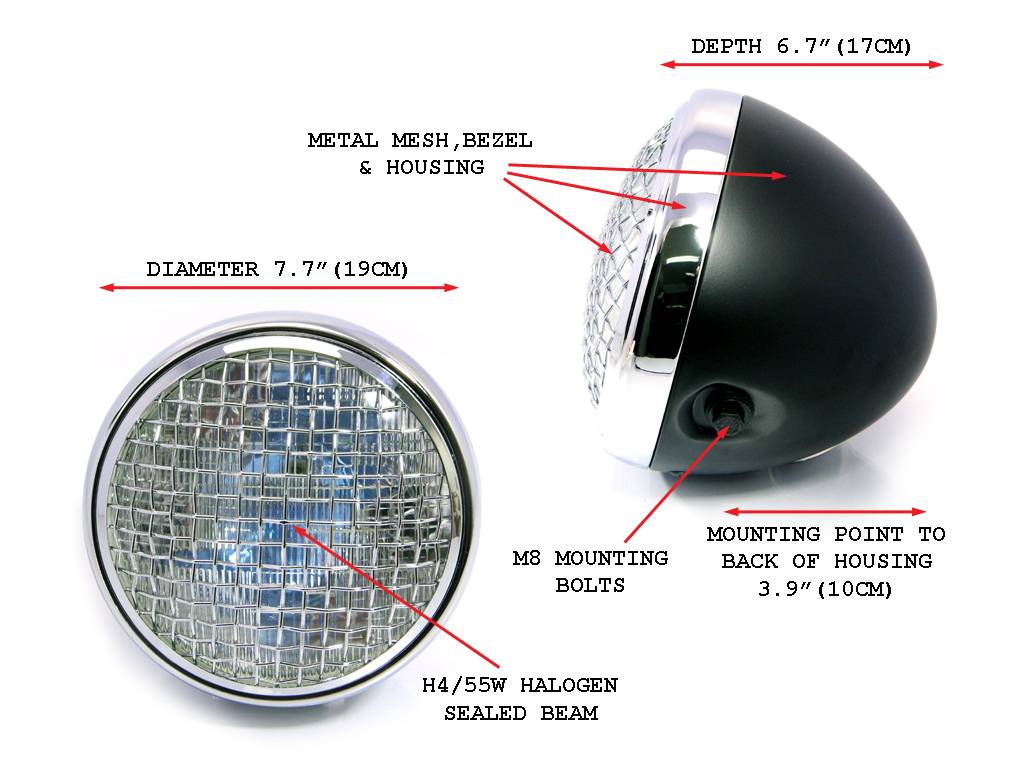 This is a stunning classic style headlight that features a very cool and fashionable mesh front grill and a retro look large metal bucket.