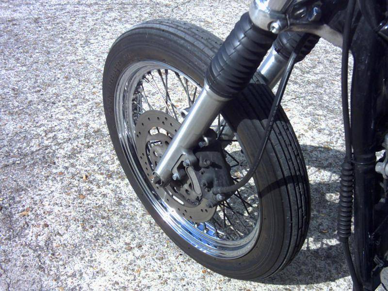 3.25 -19 TT 54 S Speedmaster MKII AM6 . Super tough and classic tyre that goes well with Firestones and/or the Avon AM7.