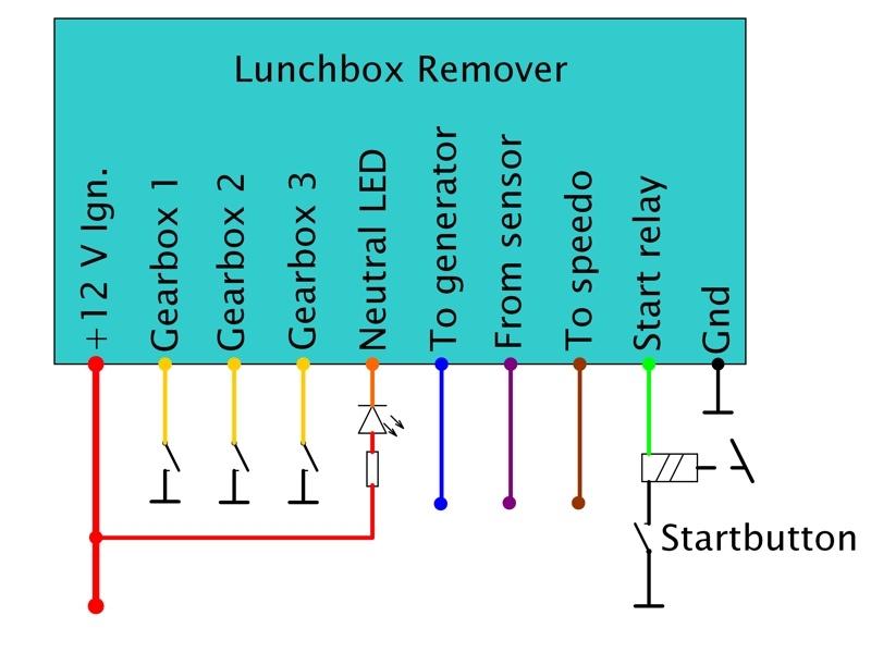 The Speedoadapter for BMW K models allow an easy implementation of the 3 gearbox switches to a modern standard speedometer with inputs for the neutral and gear number indication. The green cable allow to invert the output signals and allow a connection to a wide range of speedometers. You can also connect 6 led´s for the gear indication to the outputs if your speedo have no gear indicator implemented.