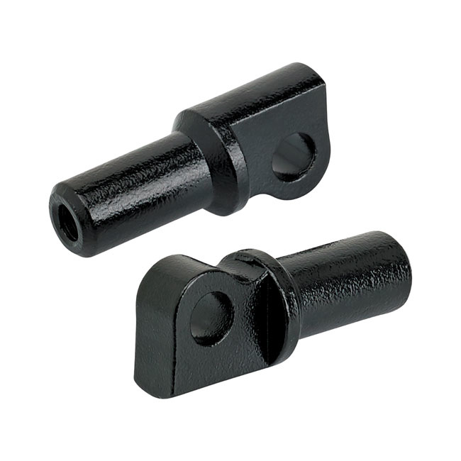 Electroplated in black. All Biltwell footpegs can be fitted with male mount adapters. This enables you to mount any Biltwell footpeg to a particular H-D application with the proper adaptor. Adapters allow the footpeg to be rotated to any desired angle and are composed of 4130 investment cast chromoly. Not designed to fit other footpeg brands than Biltwell.