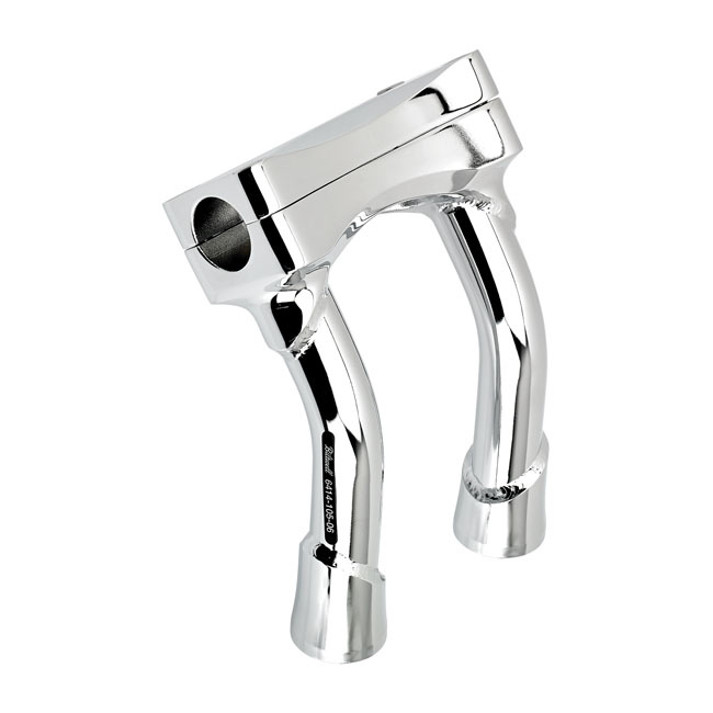 It has electroplated finishes in black or chrome and comes with approval. It is suitable for 1-1/8 (28.6mm) handlebars. It comes with 2" (51mm) Pullback, investment-cast steel upper and threaded lower construction. Riser tubes are made of 3mm thick, seamless, TIG-welded 4130 chromoly tubing with 1/2-13 threaded mounting holes that accept standard riser bolts. 3-1/2" (89mm) spacing to suit most H-D top triple trees. The stock H-D speedo and tachometer brackets fit the top clamp bolt pattern. The specific type of approval and validity for the bike model and years listed on the test report should be confirmed with your neighbourhood MCS dealer or the MCS sales department.