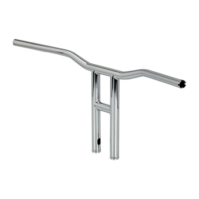 Like the standard Tyson but much bigger, 3mm thick 4130 Chromoly that is seamless and has CNC-machined wiring holes and slots. 31" broad bars with a 2.5" pullback are used. Bars are 31" wide with 2.75" pullback. In the middle bars are 1" at the grips tapering to 1-1/8" diameter at the TIG welded, 1-1/4" uprights. It takes 1/2-13 threaded mounting bolts and center width is 3.5"