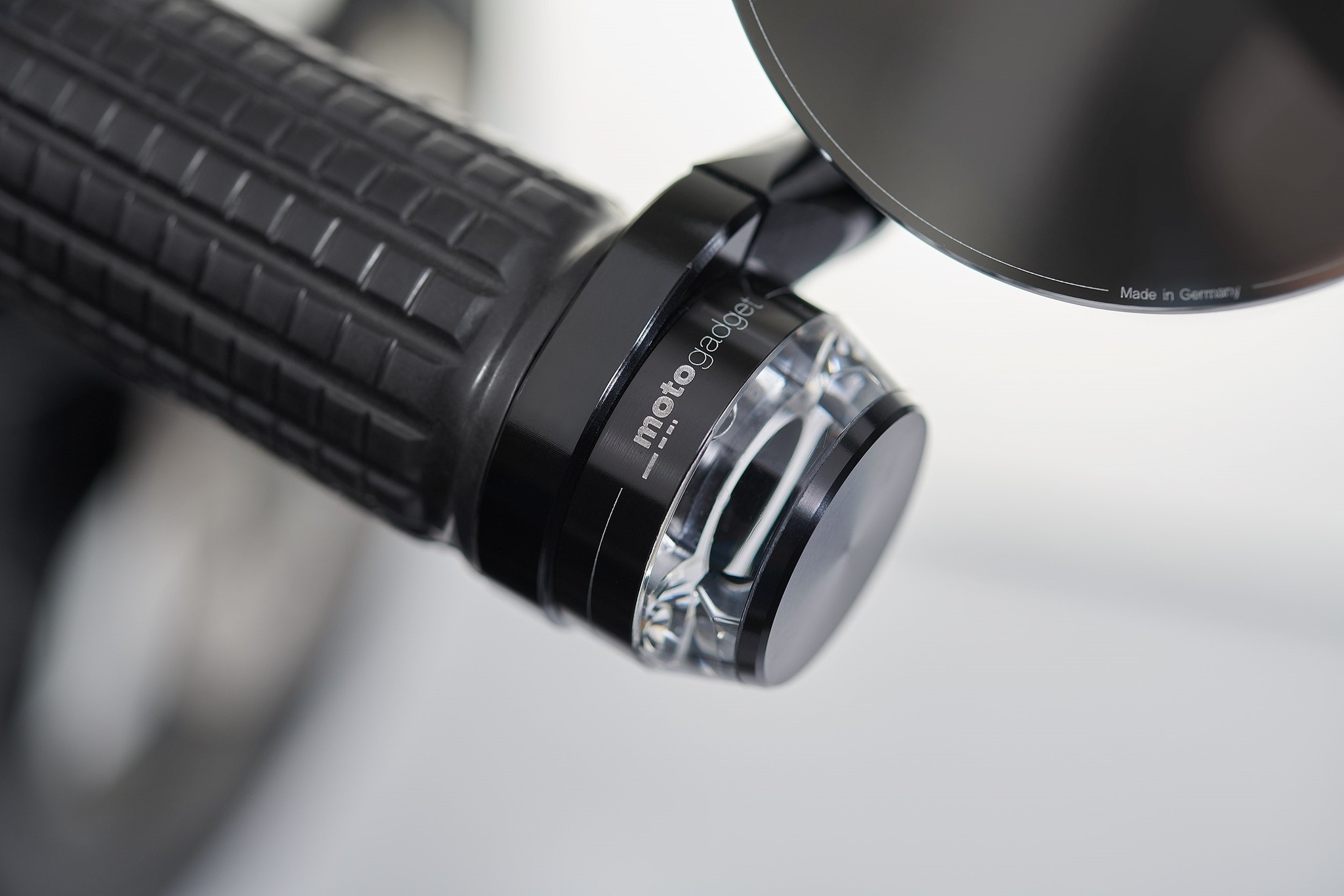 - Motogadget fully adjustable mirrors with LED handlebar indicators, E-marked