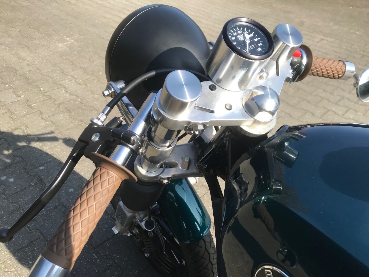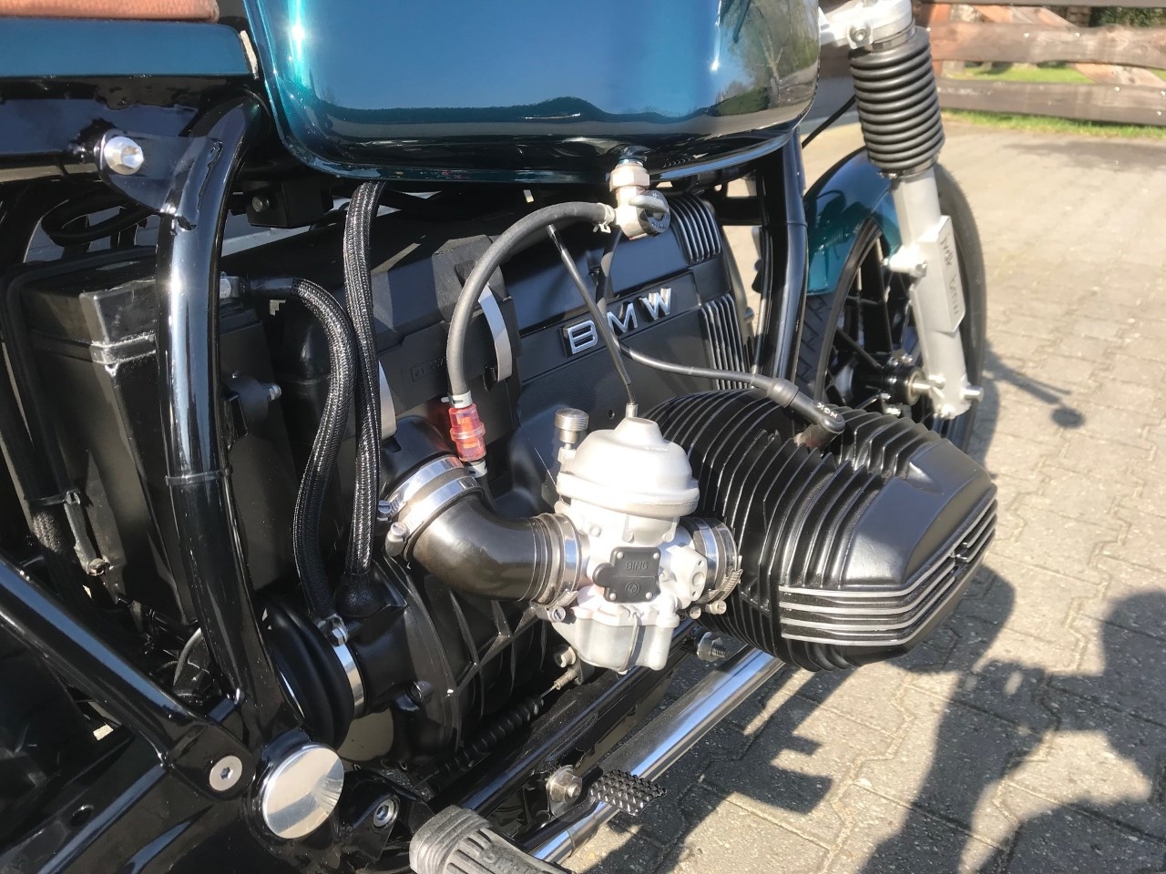 Engine has been completely dismantled and equipped with a BMW R80 fuel tank.