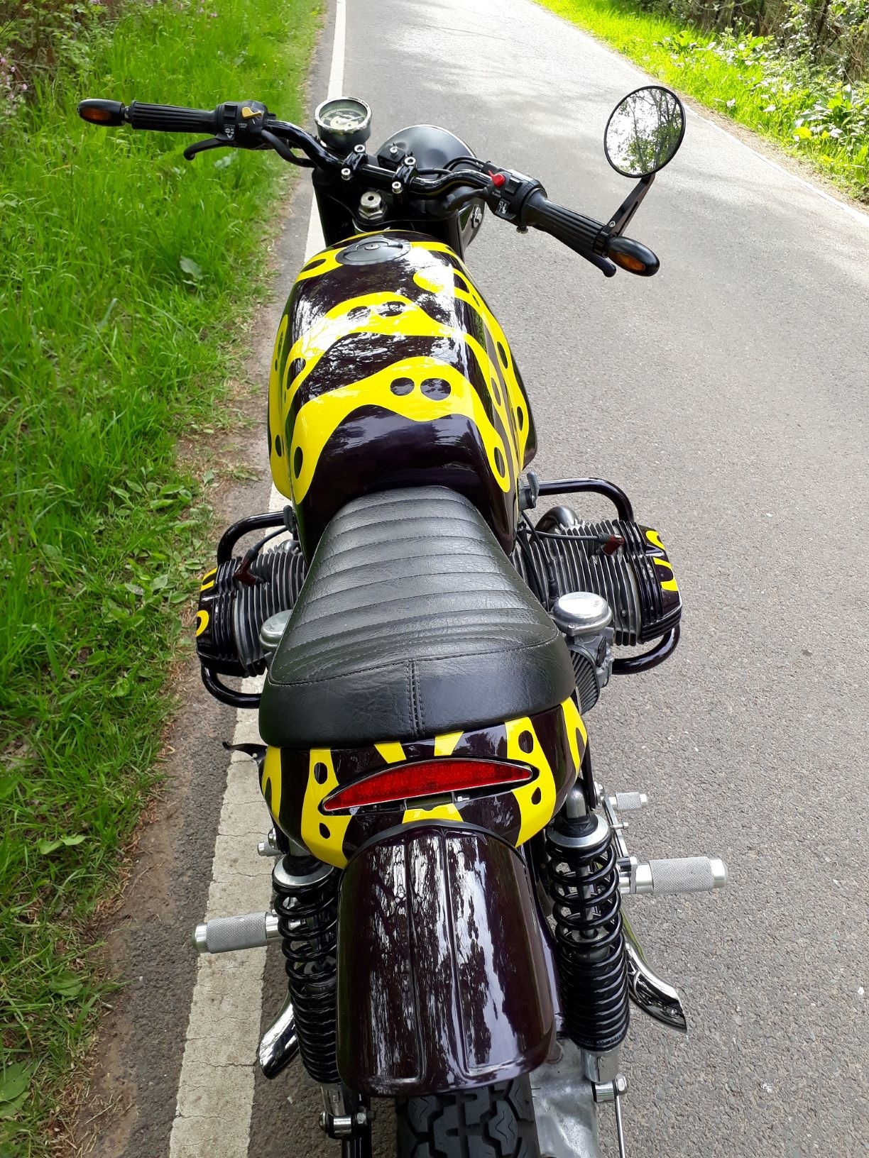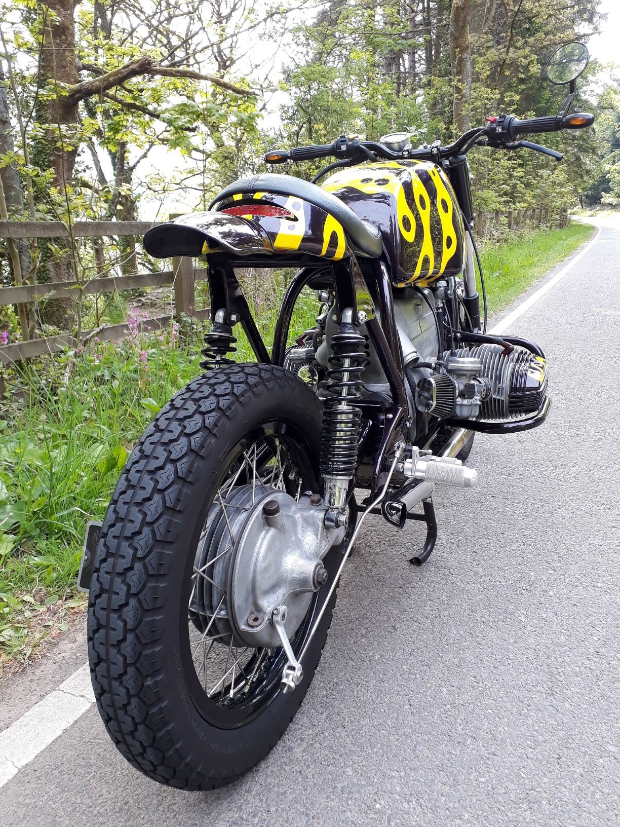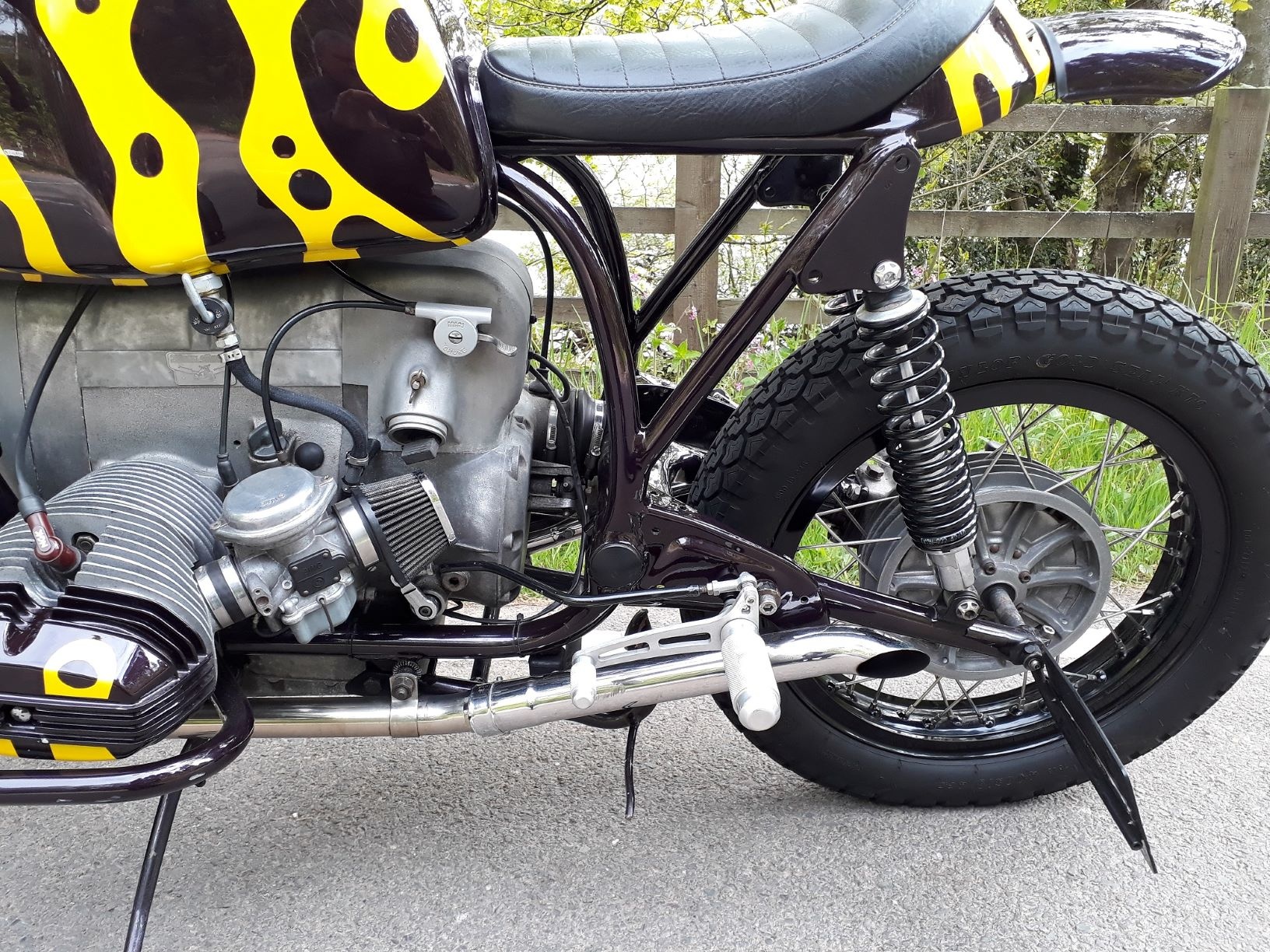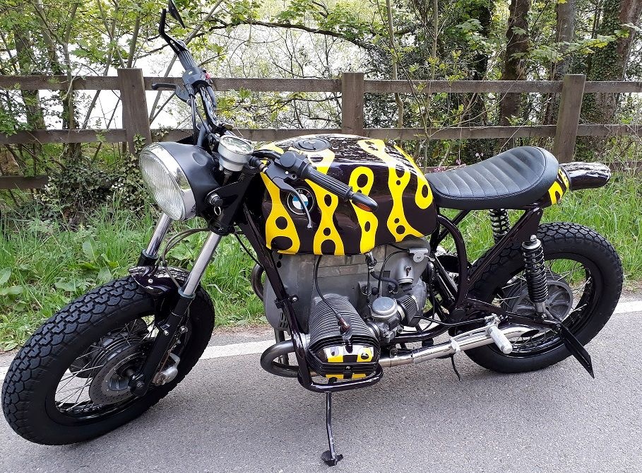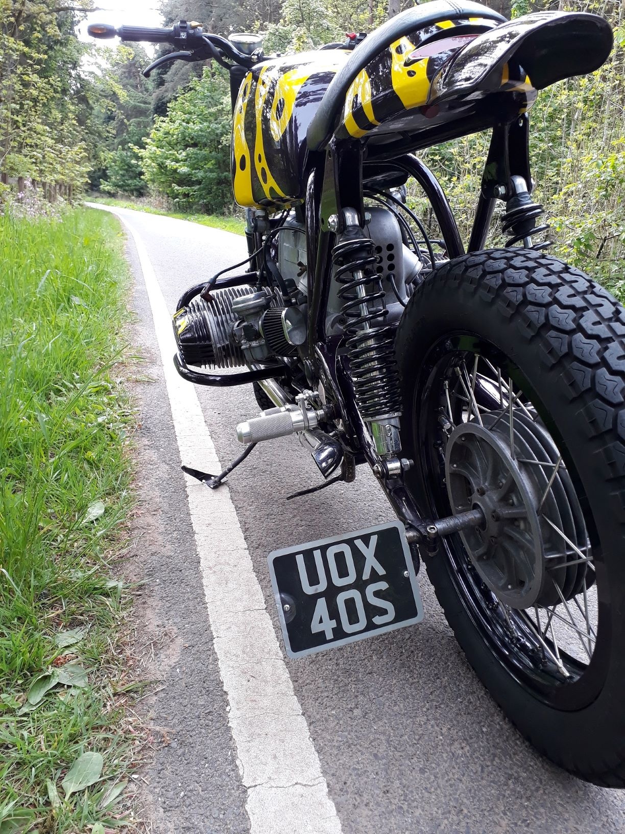 BMW R80 / 7 Café Racer. 1978 Professional build by 2WheelsMiklos. It is registered as Heritage class so is Tax and MOT exempt. (It passed the MOT every year without any problems up to it becoming exempt in 2019).