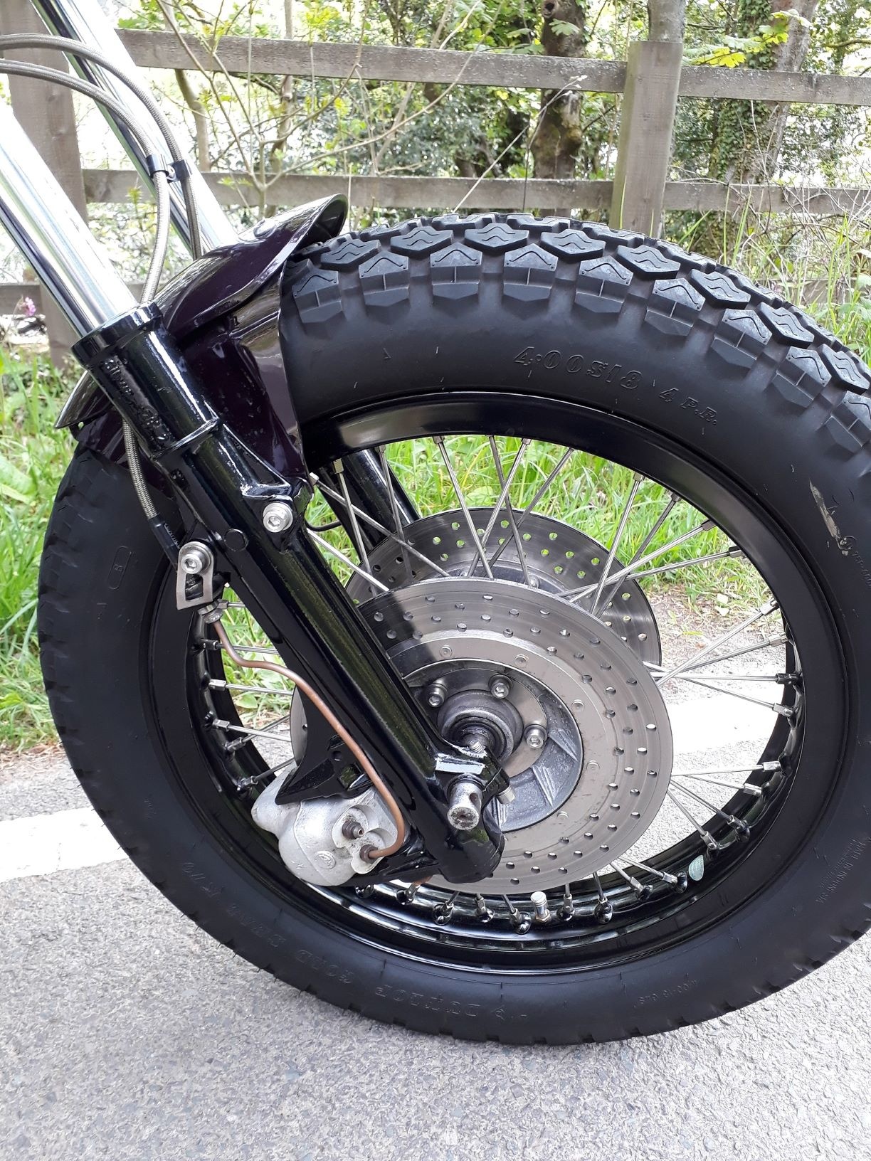 Other new parts included in the build were fork tubes & springs, Ikon shocks, tyres, brake pads, controls, cables, bar end mirror and bar-end indicators. The new wheels comprise black painted rims and hubs with stainless spokes.