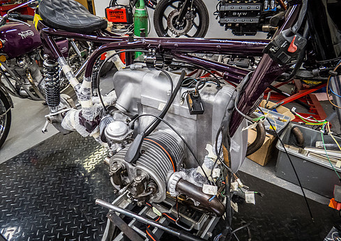 A Boyer electronic ignition and modern voltage regulator were fitted together with pod air filters.