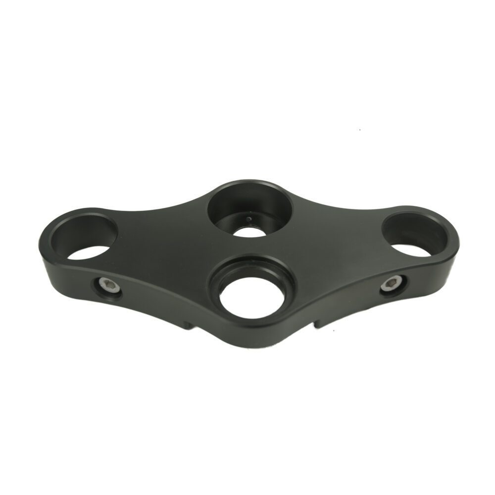 This high-quality triple tree clamp is CNC machined out of a single piece of high-grade aluminium. After machining the triple tree clamp undergoes a series of surface treatment steps including anodising. The result is a smooth satin finish that is both scratch and weather resistant. Perfect for a café racer motorcycle build or any other custom build, where you wish to use clip-ons.