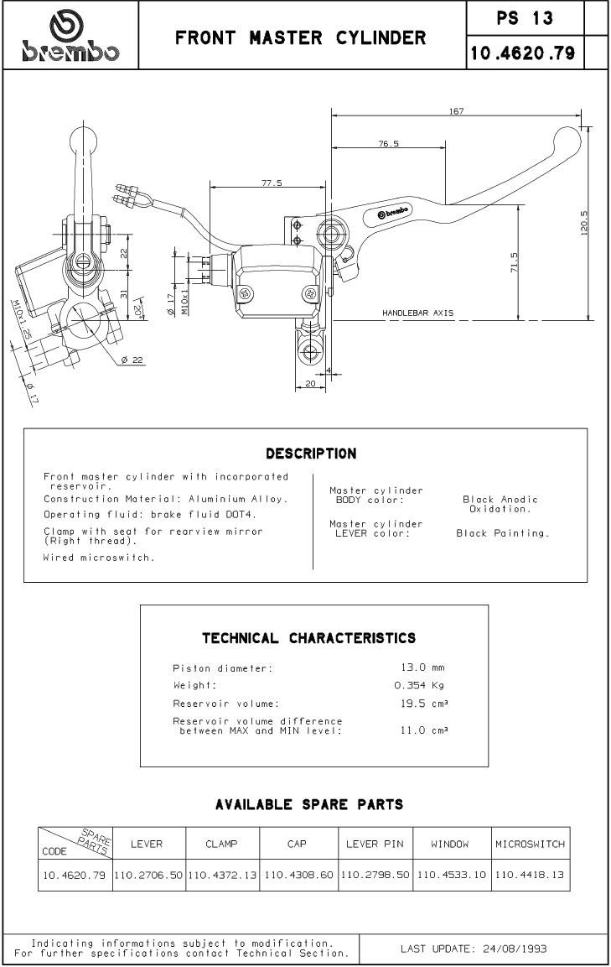 This Brembo Master Cylinder works great on a single disc bike. Retro look, but modern stopping power!
