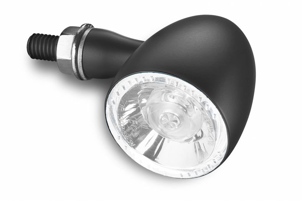 The Bullet 1000® was created with a clear goal: A turn signal with the classic bullet look and a classy Kellermann design, but equipped with modern LED technology. A newly developed light technology (Kellermann-HPT®) creates a homogenous ring of light. Design quality is not only a question of shape and surfaces but also a result of the complete look and feel when the lights are on. The high-quality metal housing with a maximum diameter of 39 mm is like a jewel on the motorcycle. It is available in chrome, black and matte chrome. The Bullet 1000® works with any sophisticated bike design. The Bullet 1000® comes in four different technical versions: Extreme turn signal, turn signal with yellow position light, indicators with white position light and turn signal with tail and brake light.