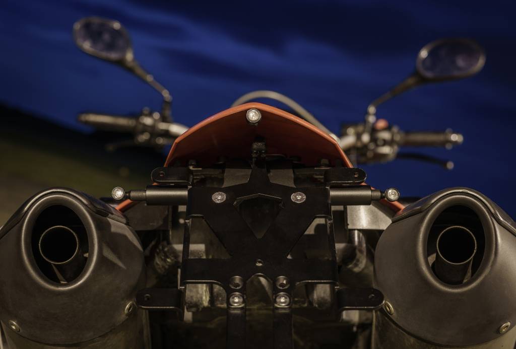 For comparison: The light surface of the Atto would fit four times on a 1 Cent coin! This consequent reduction offers completely new styling options for the motorcycle. In fact, the Bullet Atto RB basically disappears on the motorcycle.