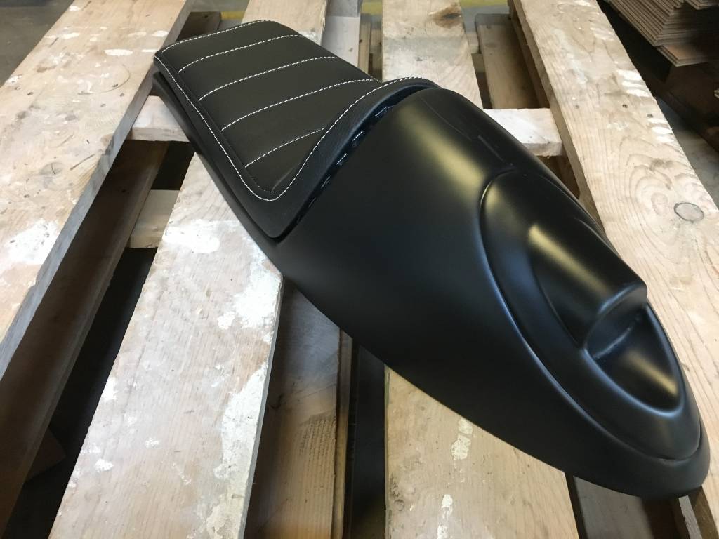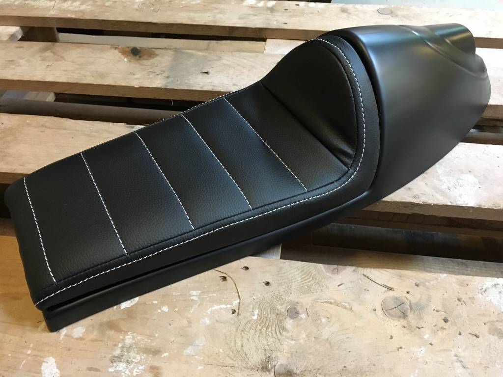 Cafe Racer Seat Tuck 'N Roll Long Black Type 19. Very versatile cafe racer seat. Due to the large length, the seat can be used well with motorcycles that have more length. Think of BMWs or the 750+ cc Japanese motorcycles.