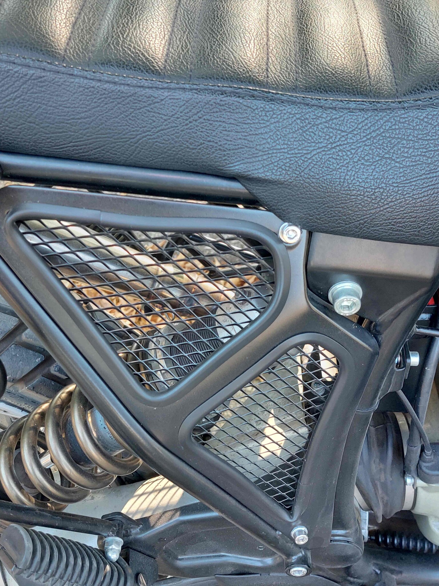 It also has bases for soft panniers integrated into the design of the machine. (They don't look like scaffoldings). Siebenrock cylinder heads and preload springs on the fork, of the same brand.