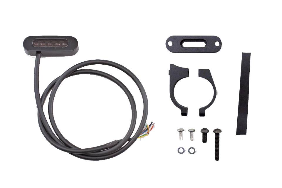 - Black watertight ABS housing with aluminium clamp for 22 mm (7/8") and 1" handlebars.
