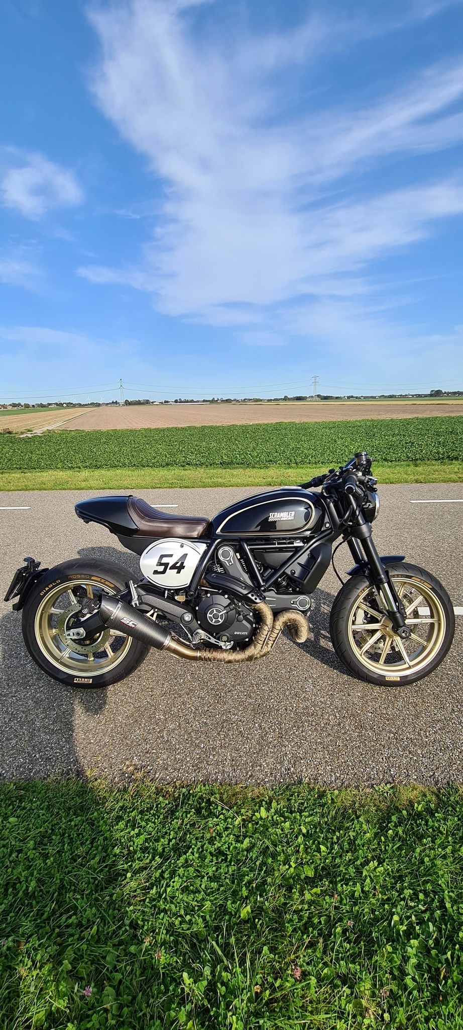 I hereby offer for sale my Ducati Scrambler Cafe Racer in new condition. The bike is equipped with a lot of extras: