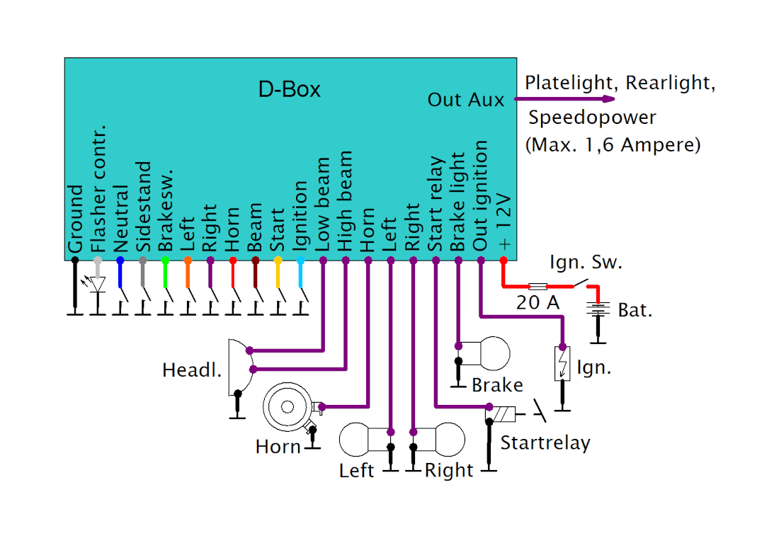 The D-Box (Electronicbox Version D) is a compact motorcycle control module that