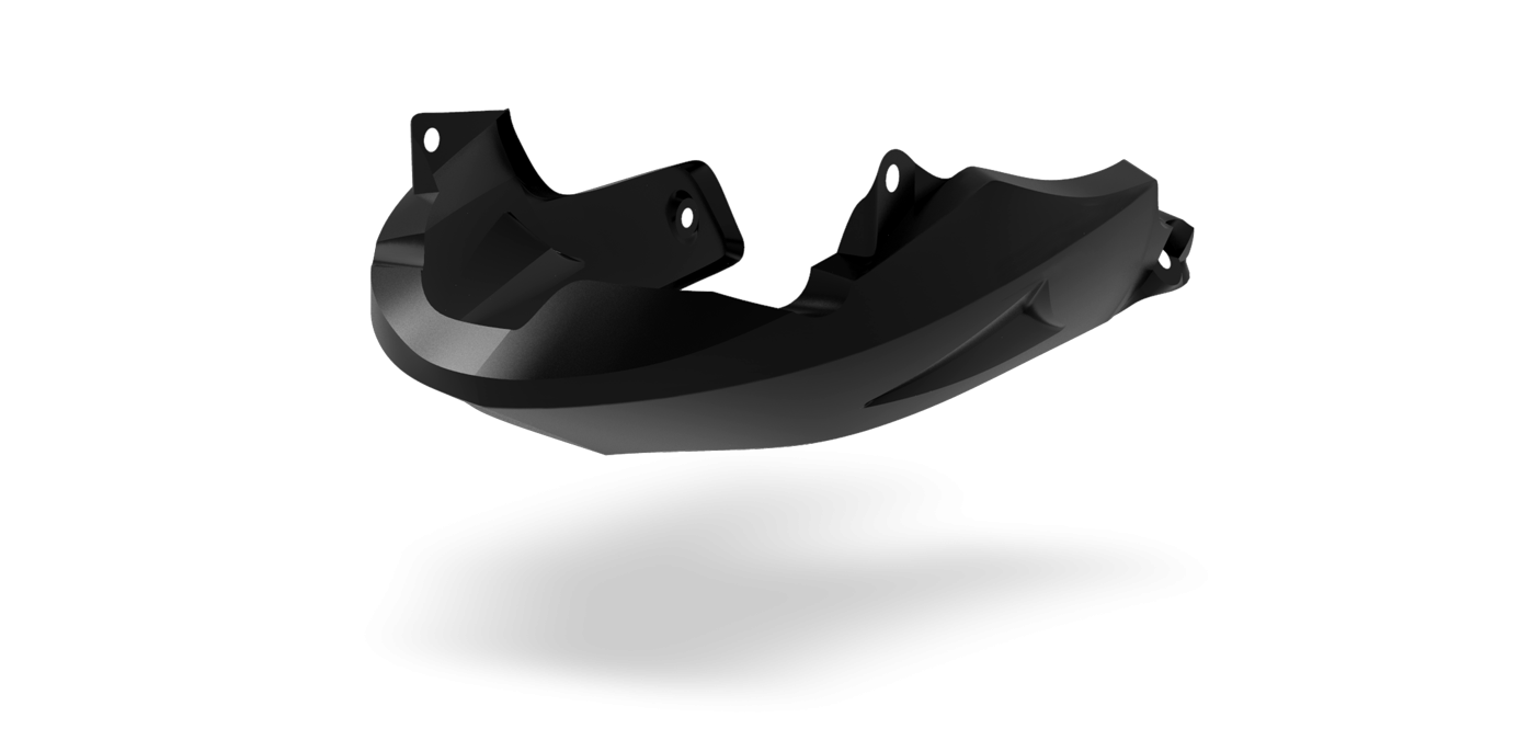The engine spoiler is made of ABS plastic in glossy black with an acrylic coating and UV protection.