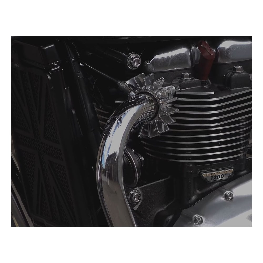These Big Fin Exhaust Clamps in Hand Polished Finish, are available in a limited edition of Big Fin Exhaust Clamps inspired by the Webco finned cooling parts from the 1960s and 70s for LC Triumph Twins serve as bolt-on replacements for your stock clamps.