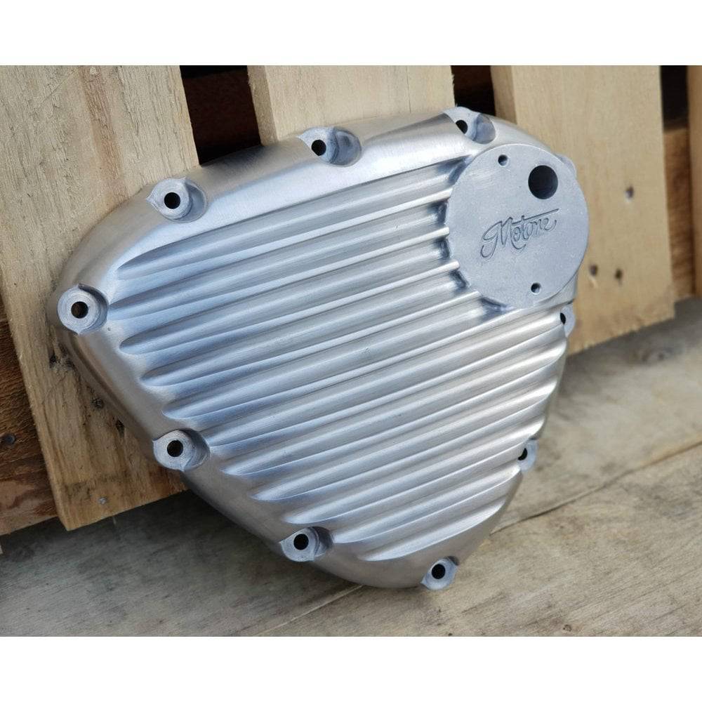 High-pressure die-cast replacement engine cover with a fin pattern directly inspired by the vintage Triumph aftermarket parts companies of yesteryear such as most famous Webco and Magnusson (MPD).