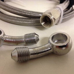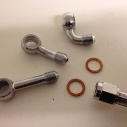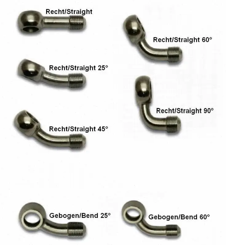 Fittings /Banjos for Stainless Brake Lines (all sorts). Select the bend you like. It is pretty easy. They are all made out of steel and are great for high-performance braking on your Cafe Racer, Tracker or another mechanical monster!