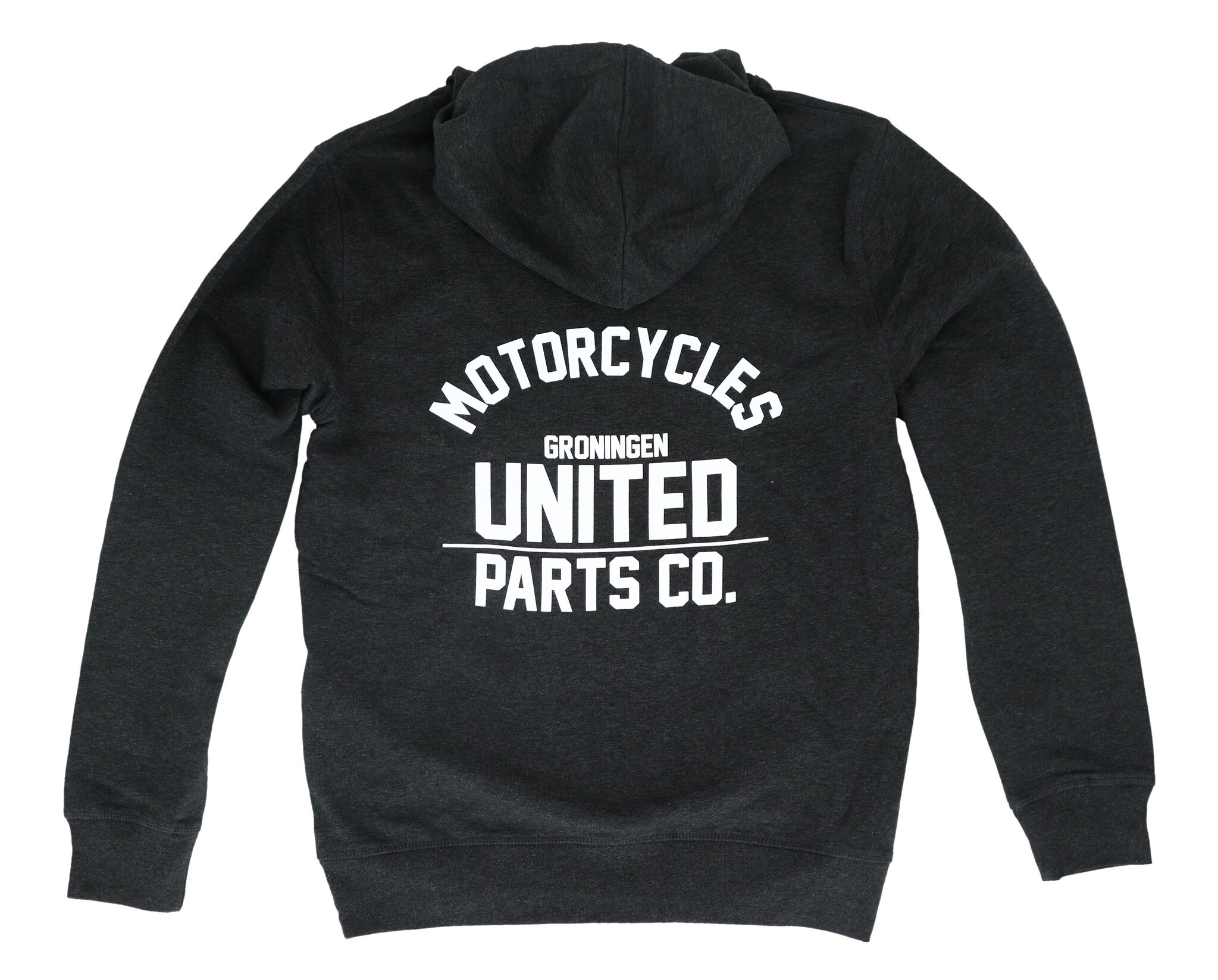 Our MCU Hoodie Parts Company in grey is a testament to the passion for motorcycles, featuring the iconic skull emblem of Motorcycles United. This hoodie seamlessly combines style and comfort, making it the perfect expression of your dedication to the two-wheeled lifestyle.