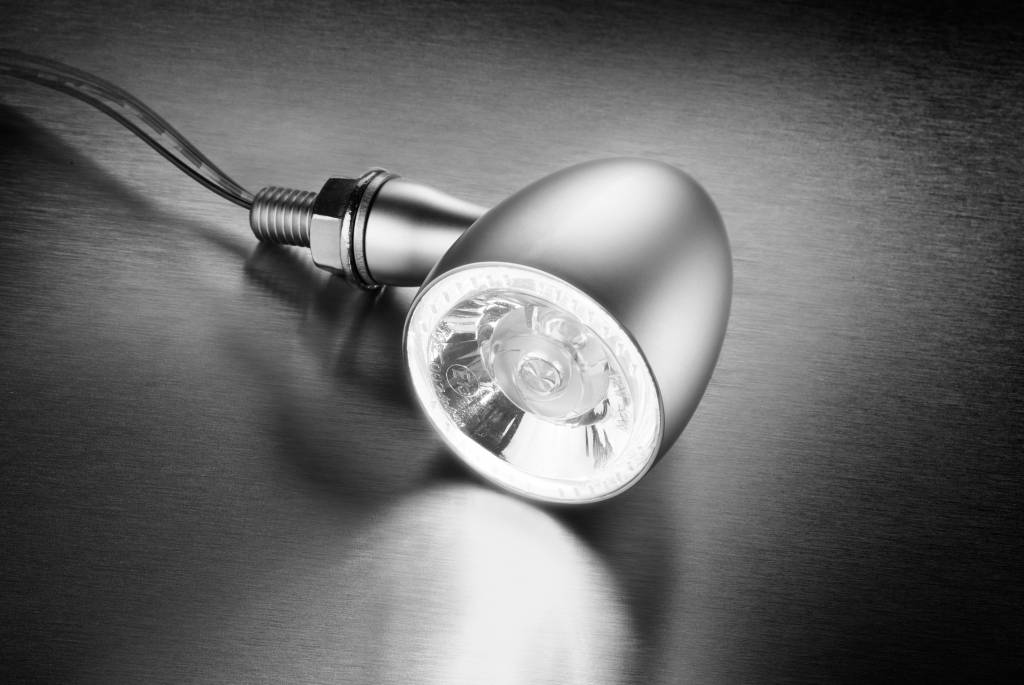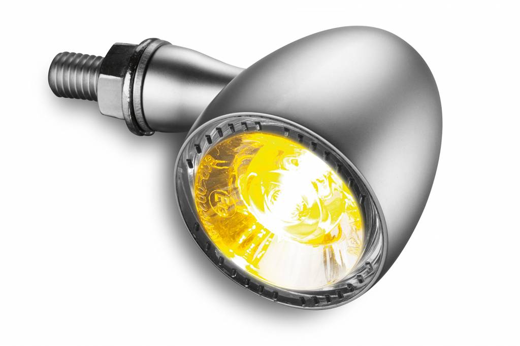 The Bullet 1000® was created with a clear goal: a turn signal with the classic bullet look and a classy Kellermann design, but equipped with modern LED technology. A newly developed light technology (Kellermann-HPT®) creates a homogenous ring of light. Design quality is not only a question of shape and surfaces but also a result of the complete look and feel when the lights are on. The high-quality metal housing with a maximum diameter of 39 mm is like a jewel on the motorcycle. It is available in chrome, black and matte chrome. The Bullet 1000® works with any sophisticated bike design. The Bullet 1000® comes in four different technical versions: Extreme turn signal, turn signal with yellow position light, turn signals with white position light and turn signal with tail and brake light.